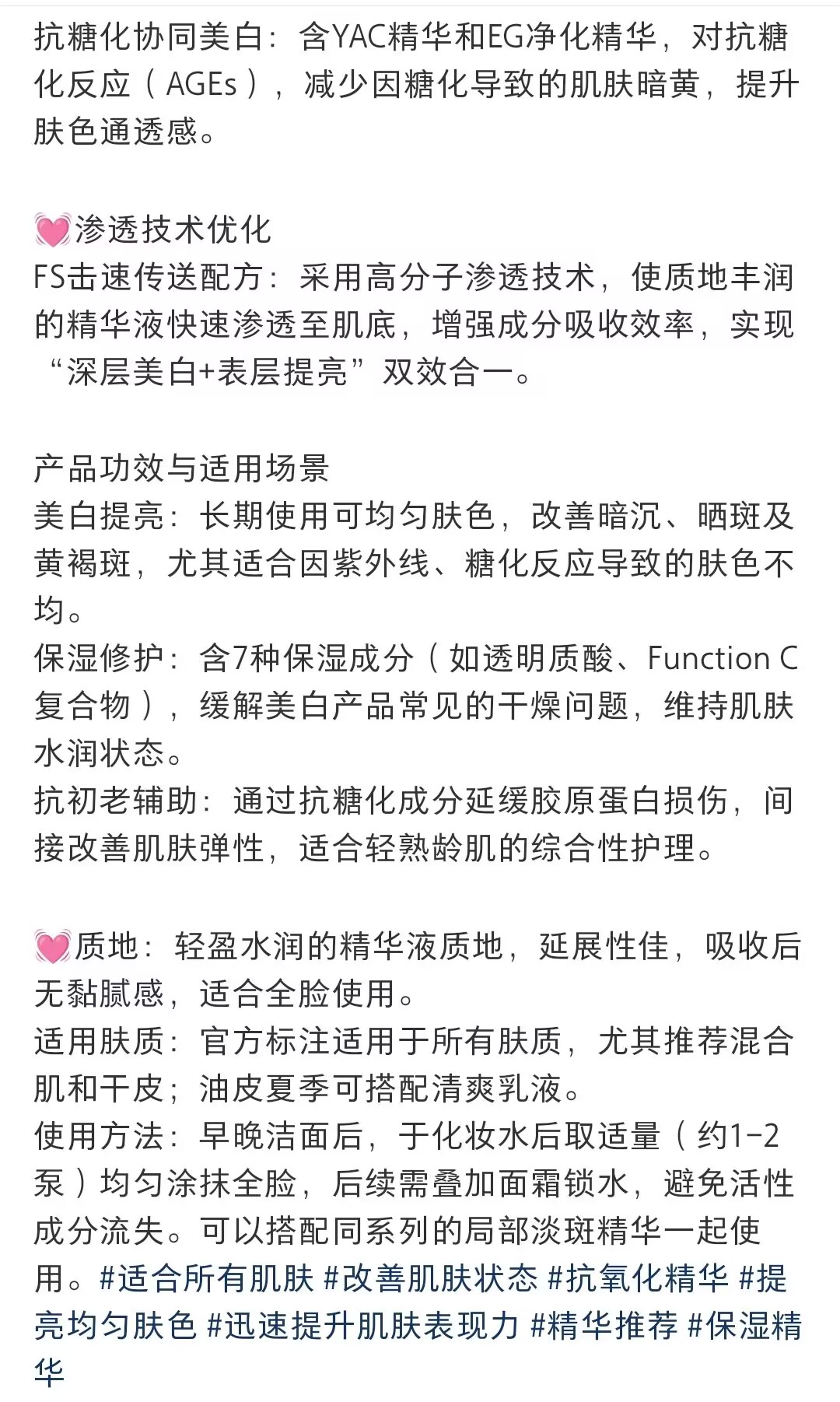 让皮肤变得白皙的同时也含有抗糖化的成分