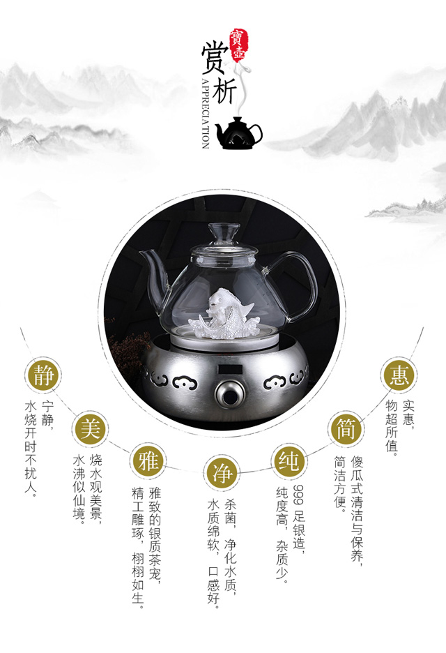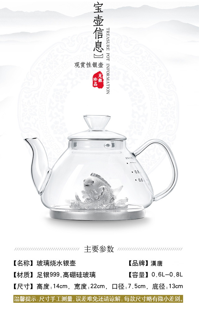 【专柜特供】御宝壶艺术观赏烧水银壶 高硼玻璃 创意茶宠
