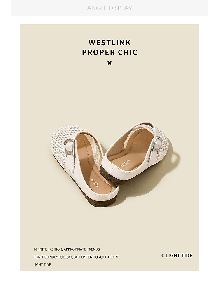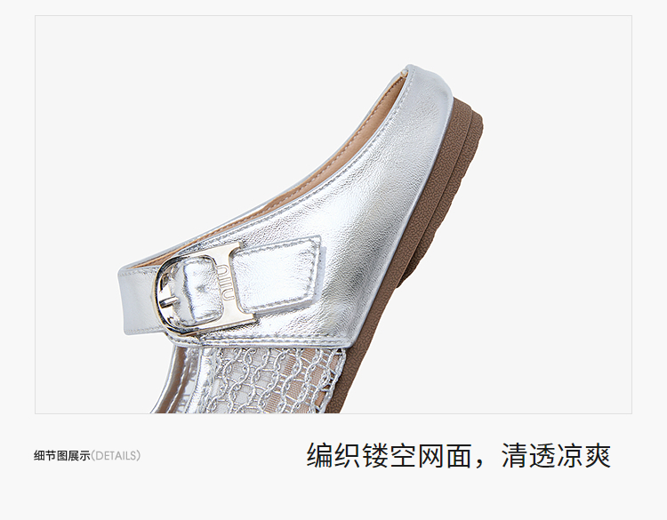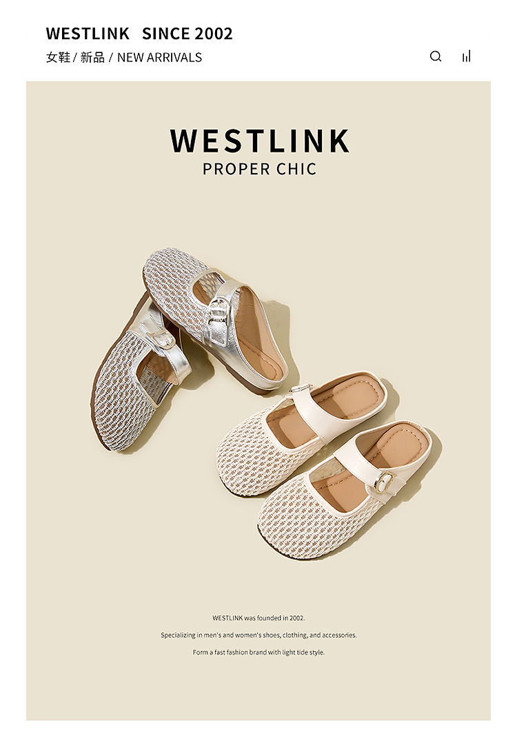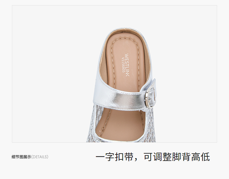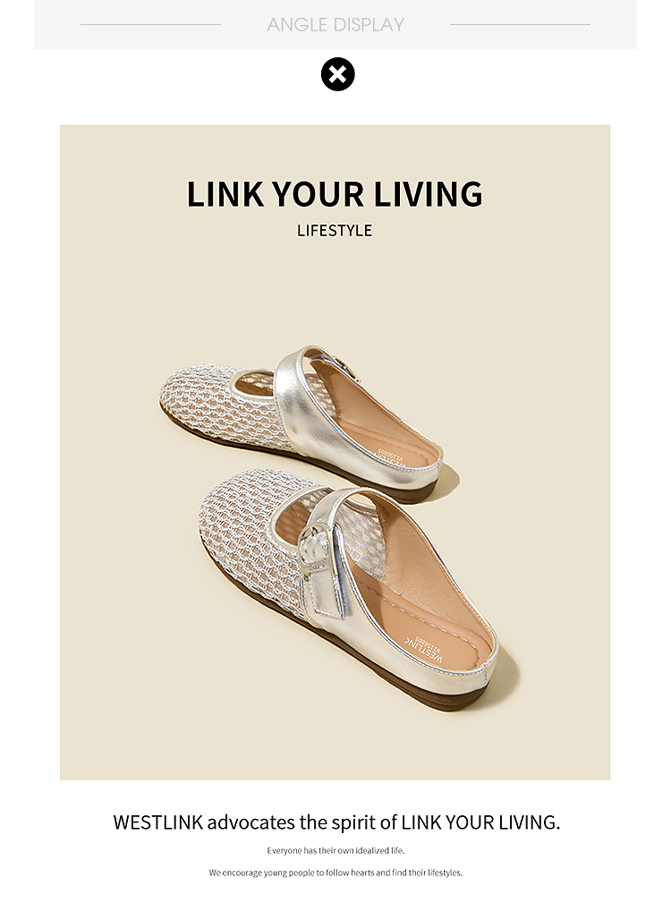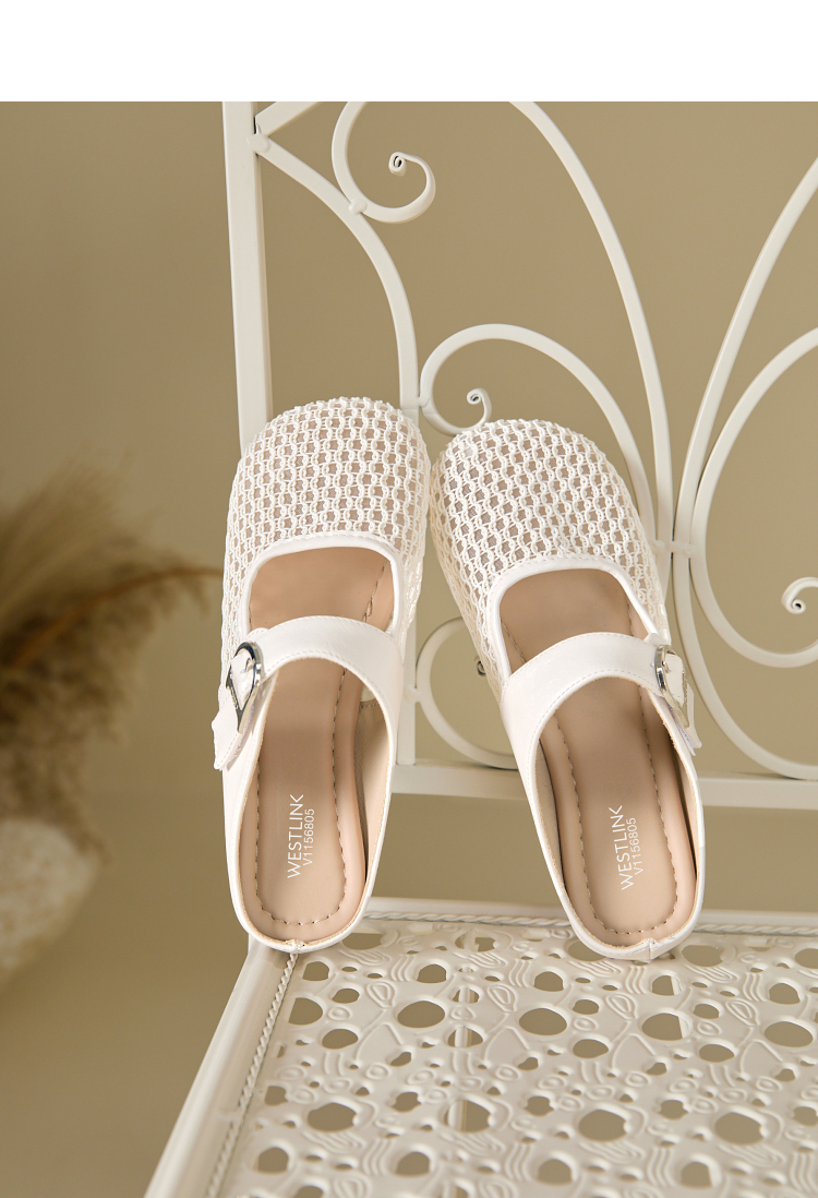 西遇镂空包头半拖鞋女夏季新款一字带网面穆勒鞋平底外穿拖鞋V1156805