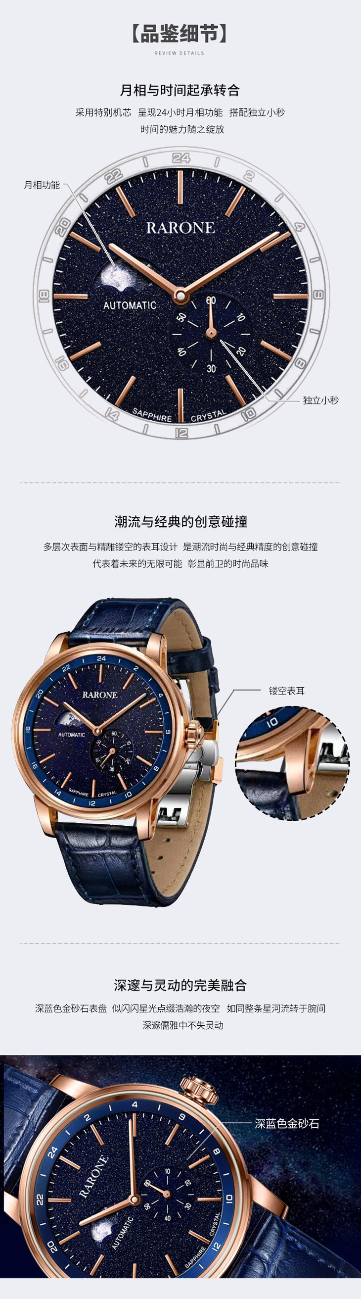 RARONE雷诺表始终秉持创新设计与精品战略。旨在帮助人们精确感悟时间,以一种无畏、坚韧的精英态度,激励每个人在探索世界的过程中,御时而行。