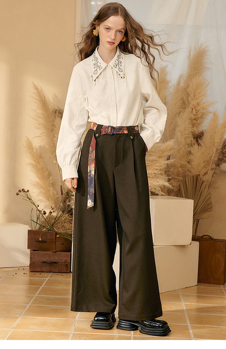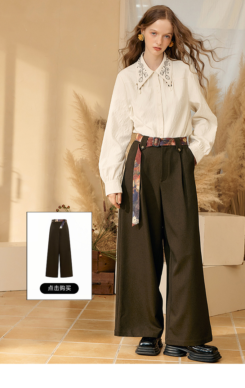 两三事梵高文艺 赭谣漫信 2025秋季新款刺绣纽扣装饰阔腿休闲裤女