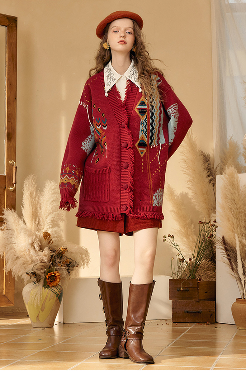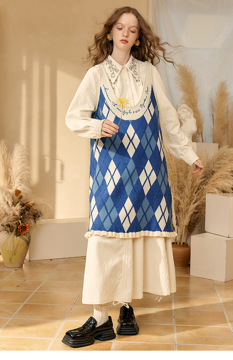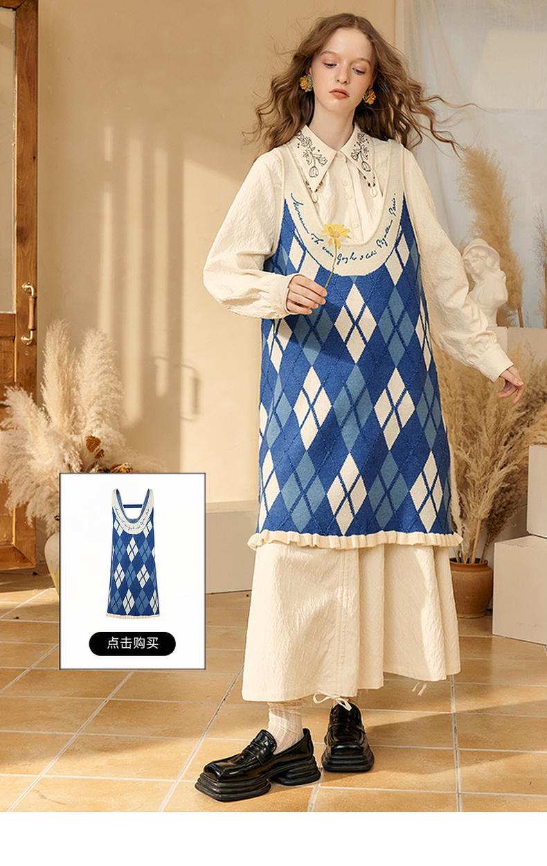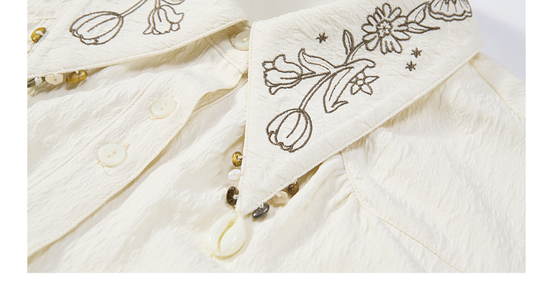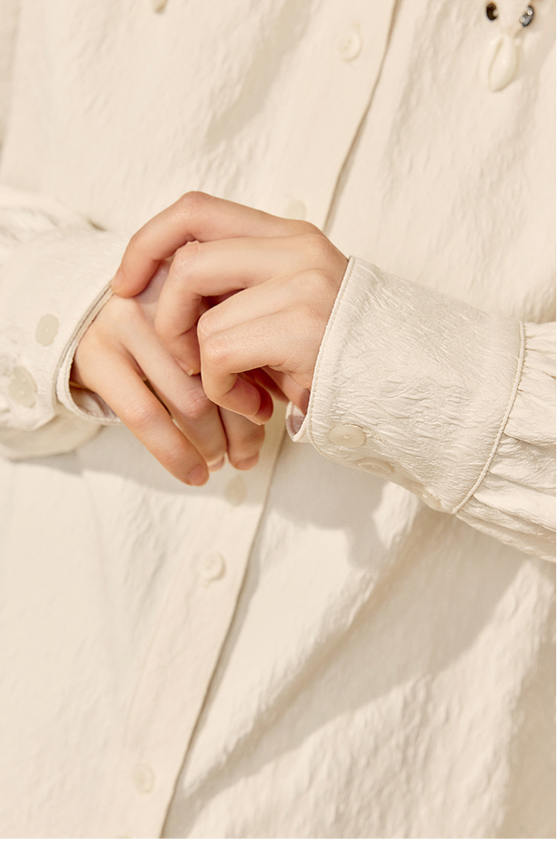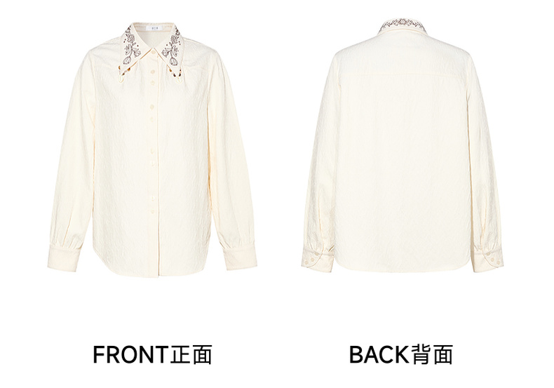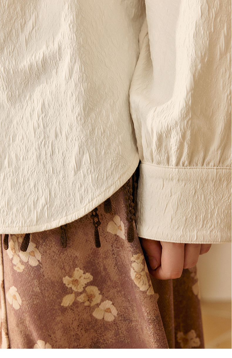两三事 风花光尘 2024冬季新款文艺风绣花翻领纽扣装饰长袖衬衫女