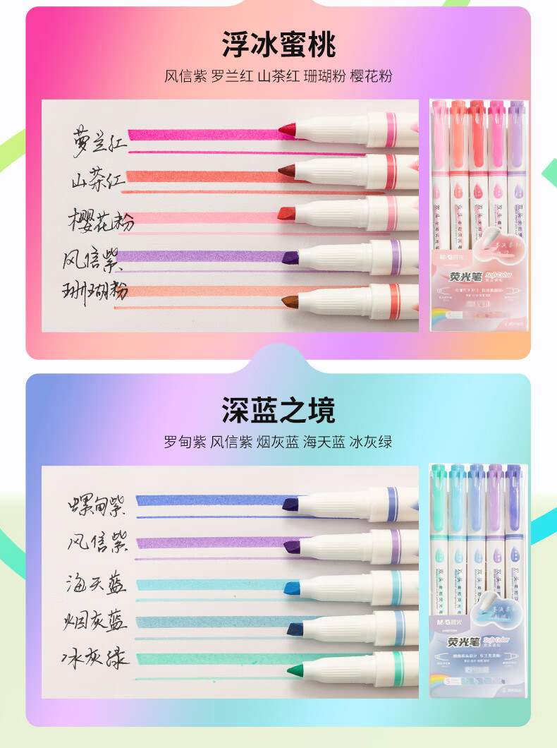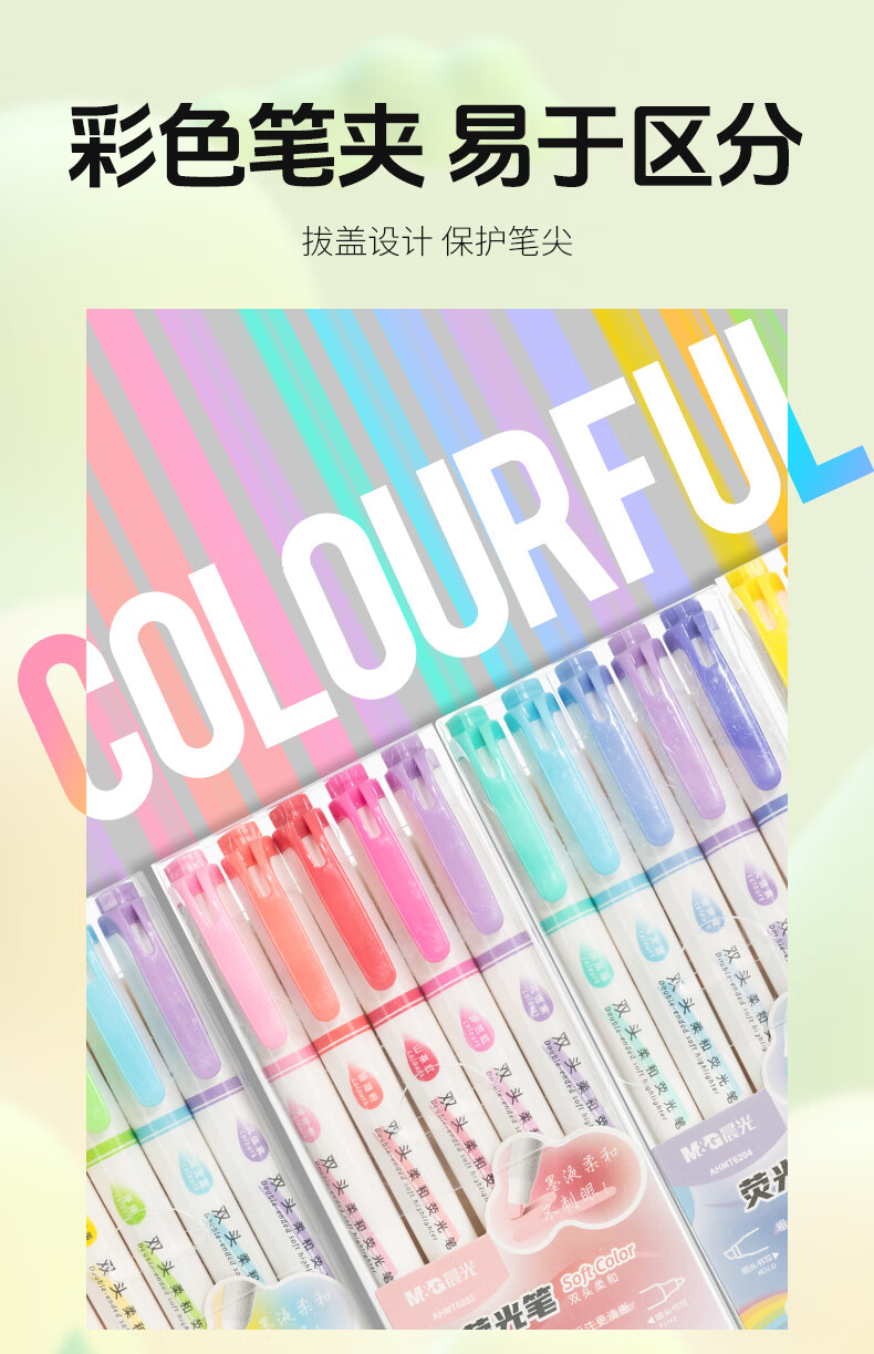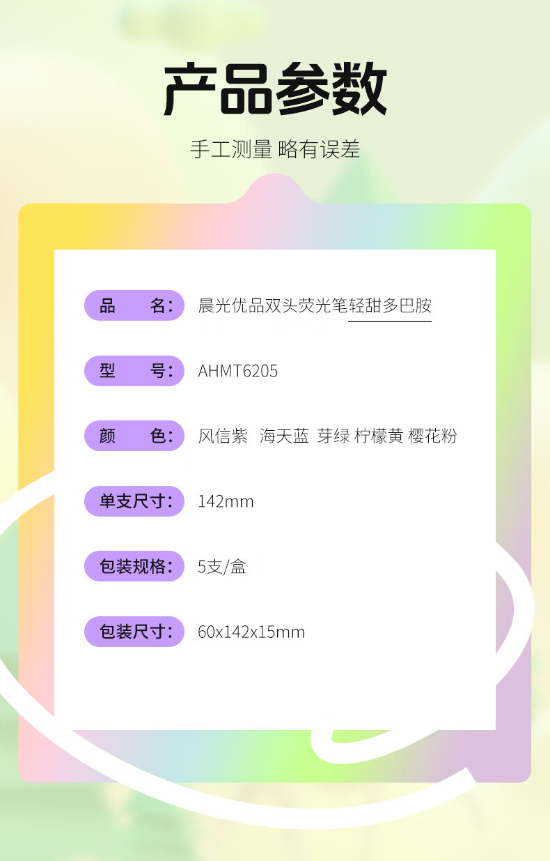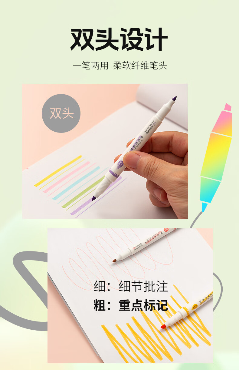 晨光(M&G)文具5色双头荧光笔 粗细两用记号笔 彩色划重点标记笔 优品轻甜多巴胺系列手帐笔 5支/盒AHMT6205 100074021577