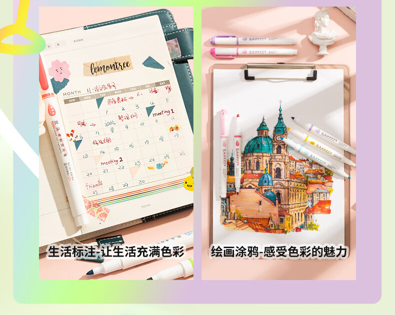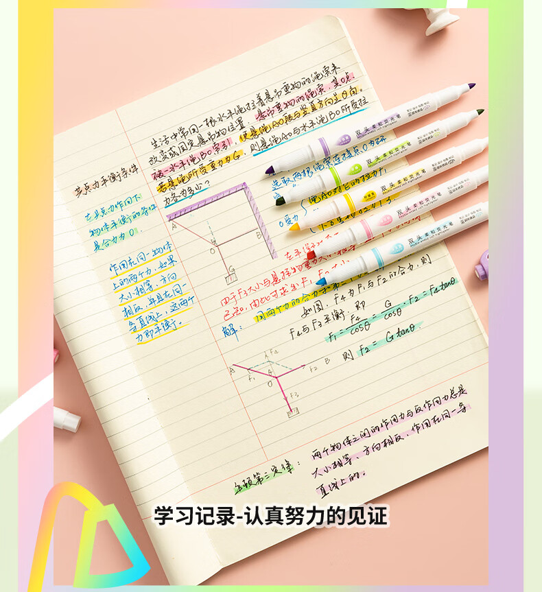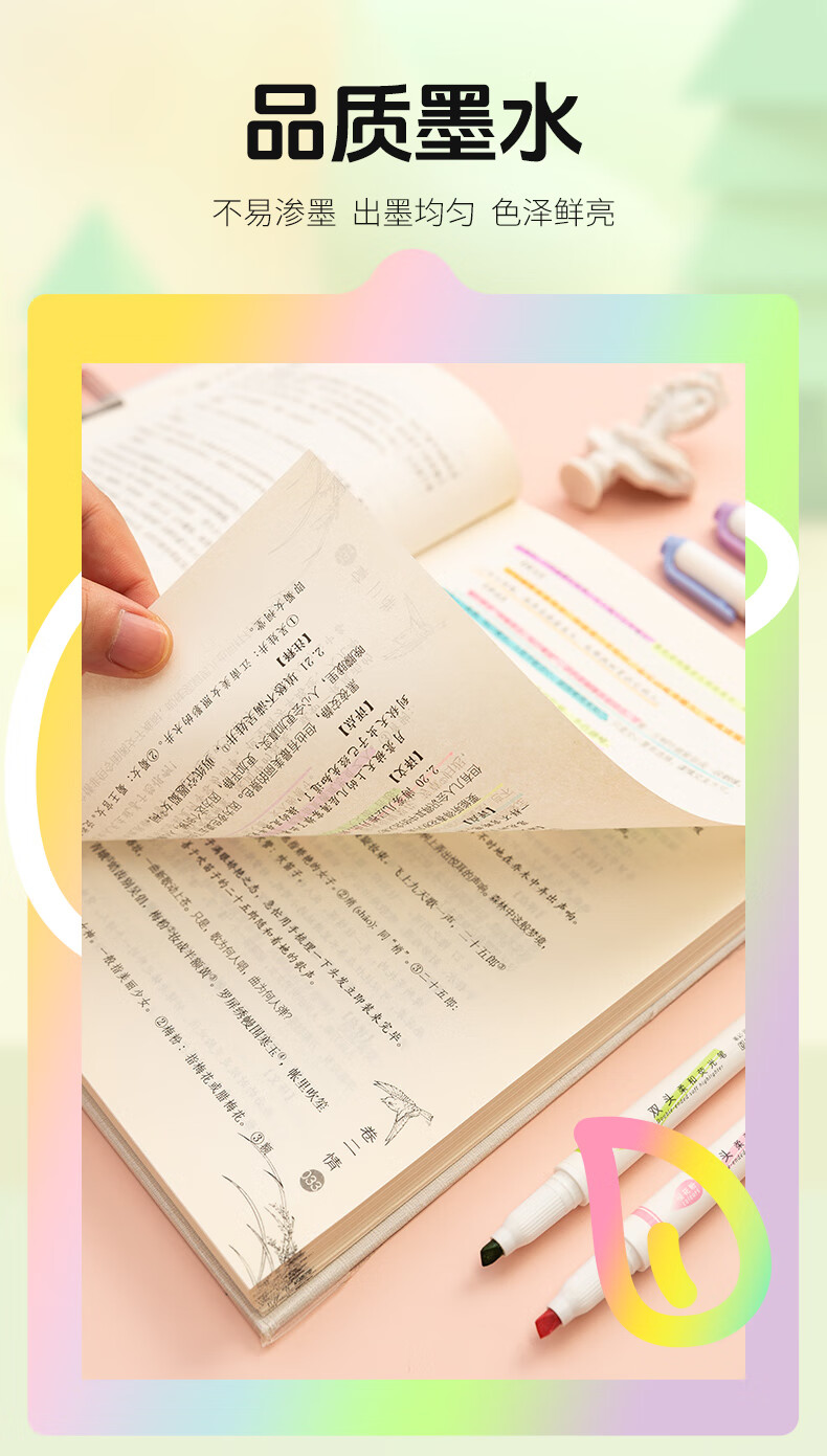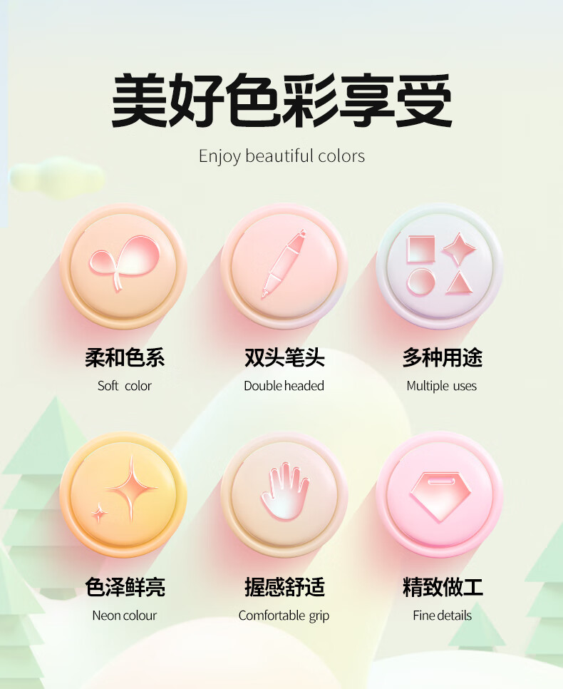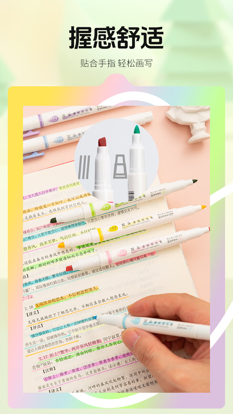 晨光(M&G)文具5色双头荧光笔 粗细两用记号笔 彩色划重点标记笔 优品轻甜多巴胺系列手帐笔 5支/盒AHMT6205 100074021577