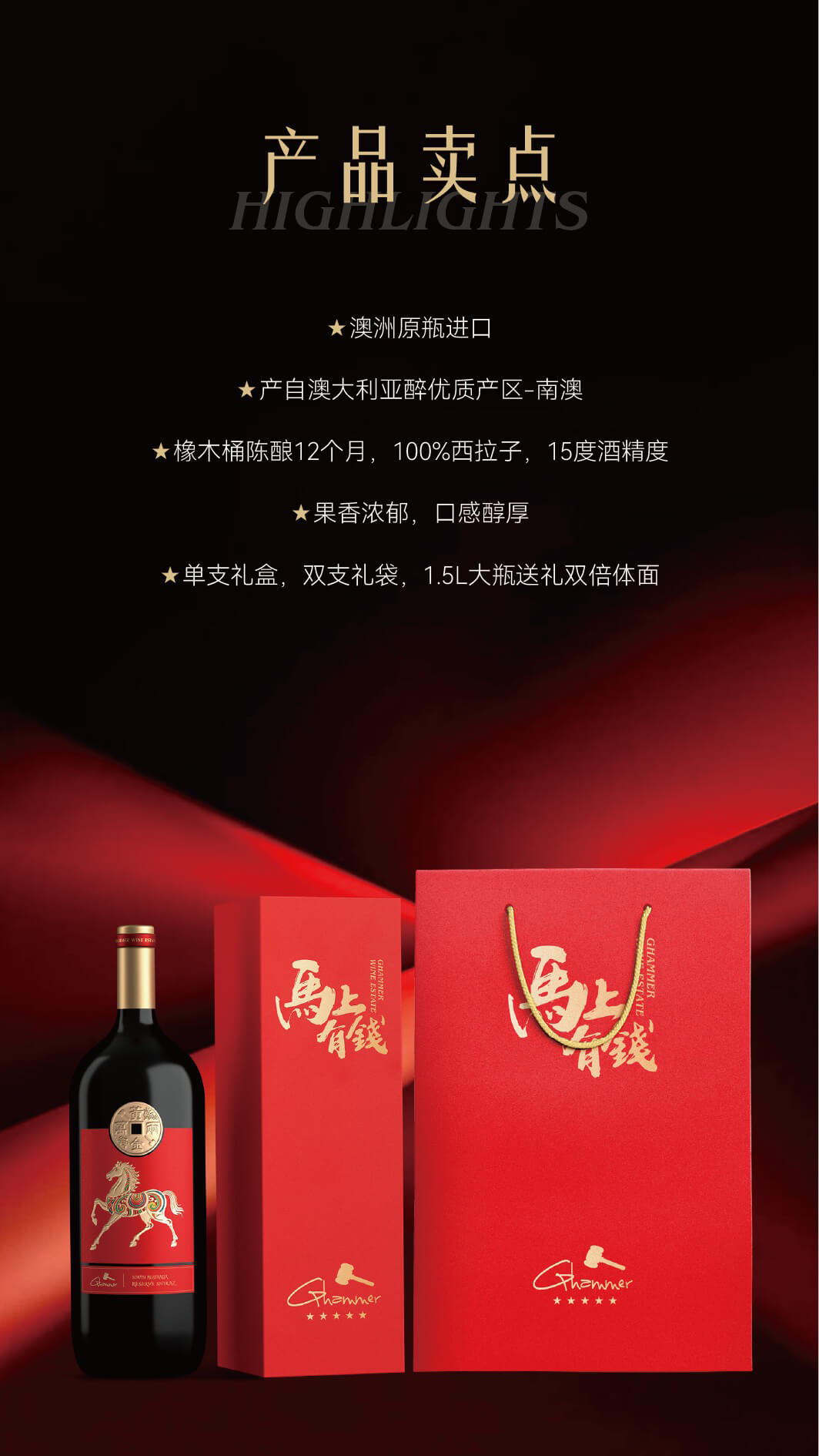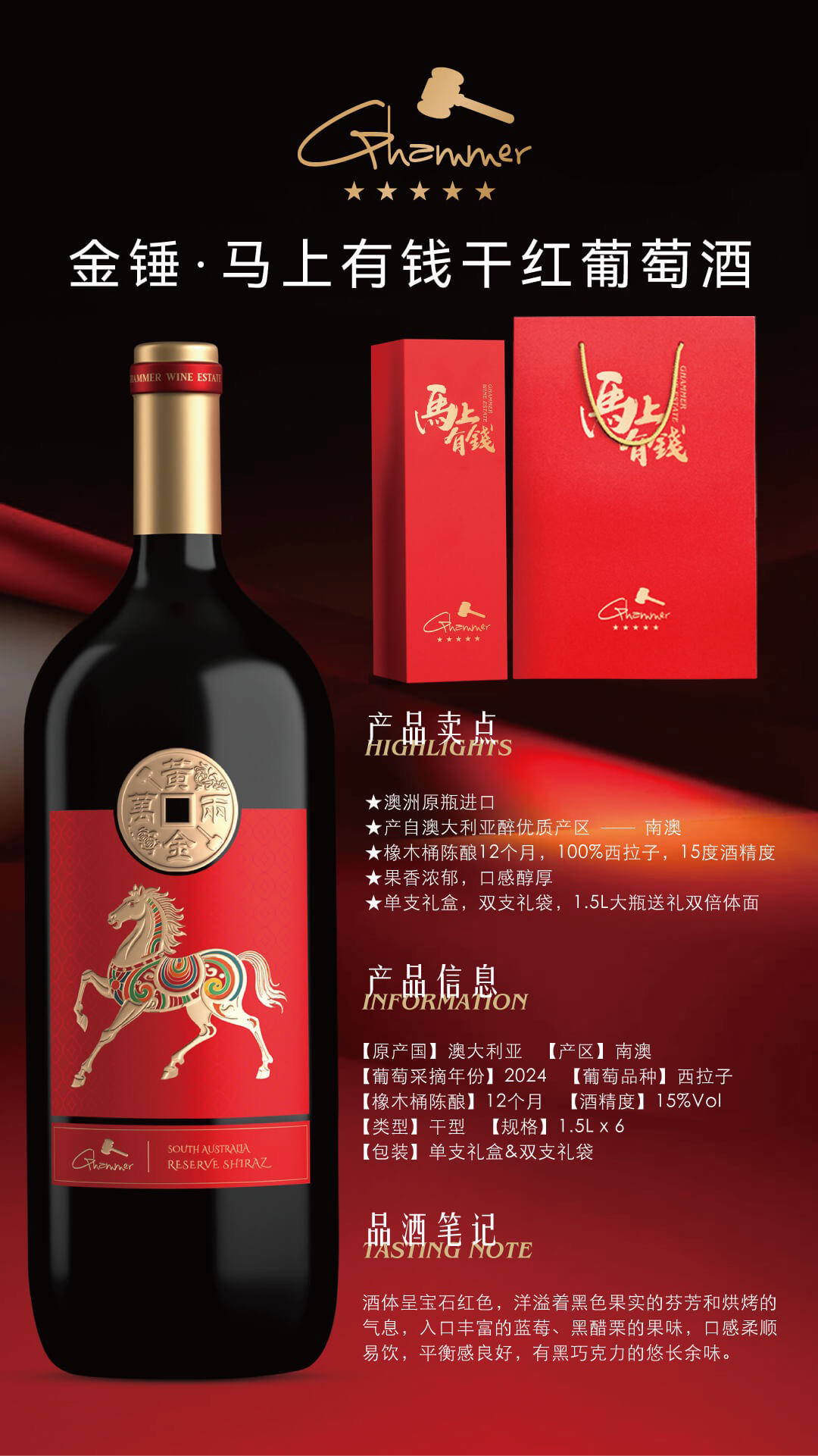 【自营】金锤马上有钱珍藏西拉干红葡萄酒1.5L装马年专属高端红酒礼盒 1.5升*2支礼盒装