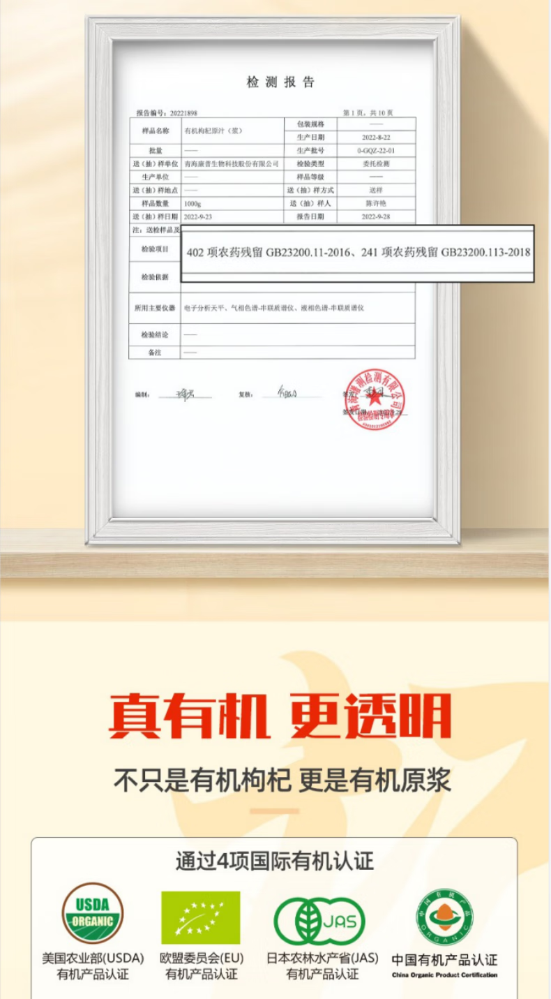 呀啦嗦 有机枸杞原浆300mL礼盒装(30mL*10袋)
