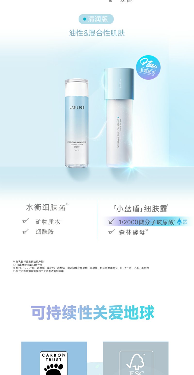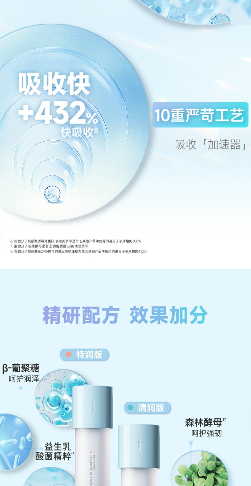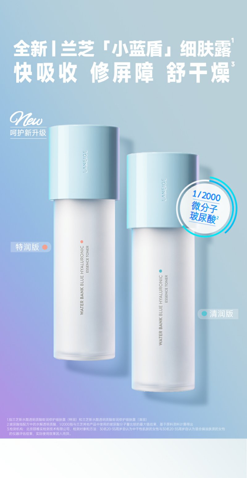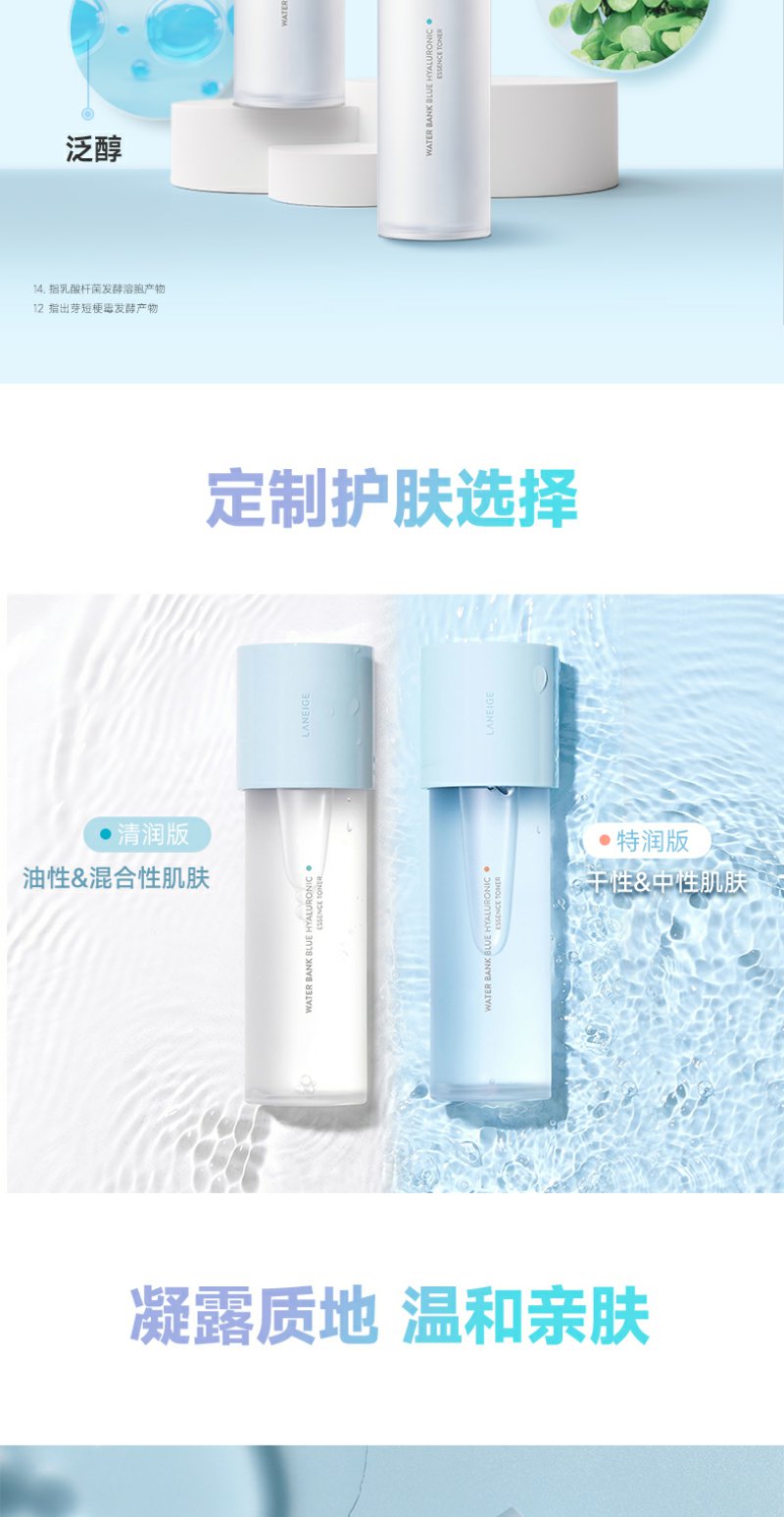 兰芝 新水酷透明质酸嘭润修护细肤露 160ml 特润补水