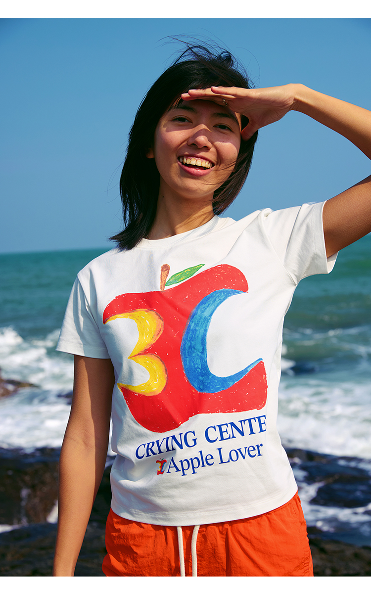 CryingCenter 3C苹果印花夏季正肩修身显瘦索罗娜凉感圆领短袖
