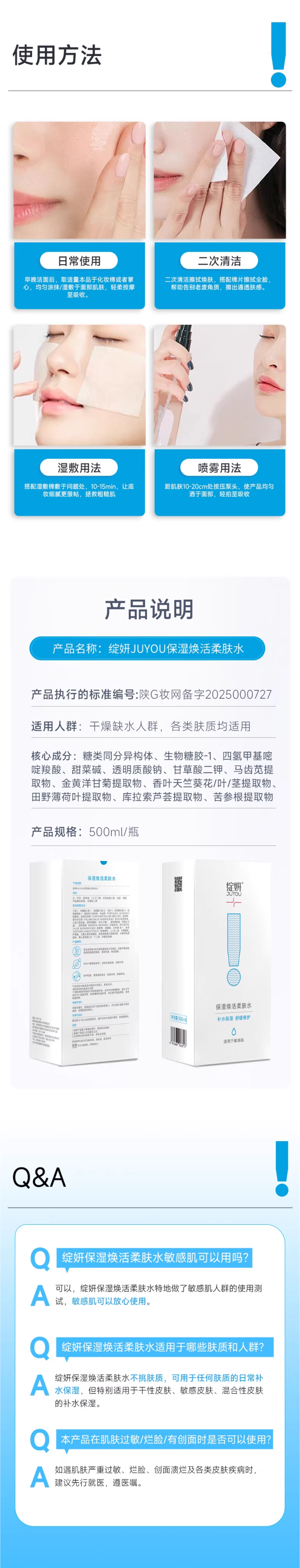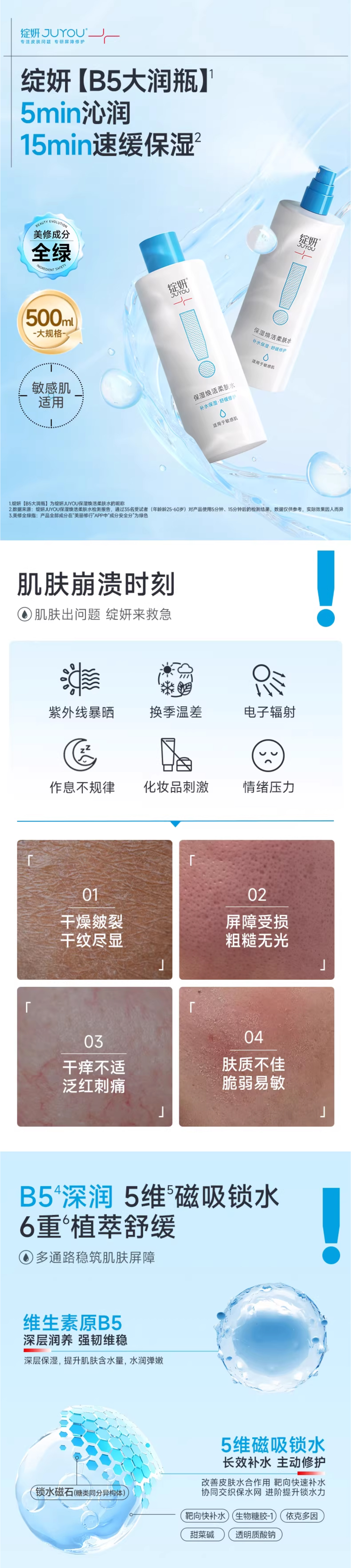 【绽妍保湿焕活柔肤水】磁吸锁水 植萃舒缓 500ml/瓶