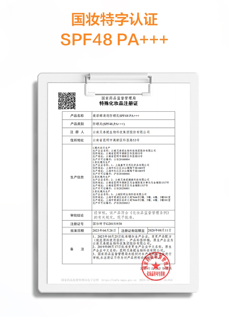 薇诺娜50g清透防晒乳SPF48PA+++ 日常通勤常备