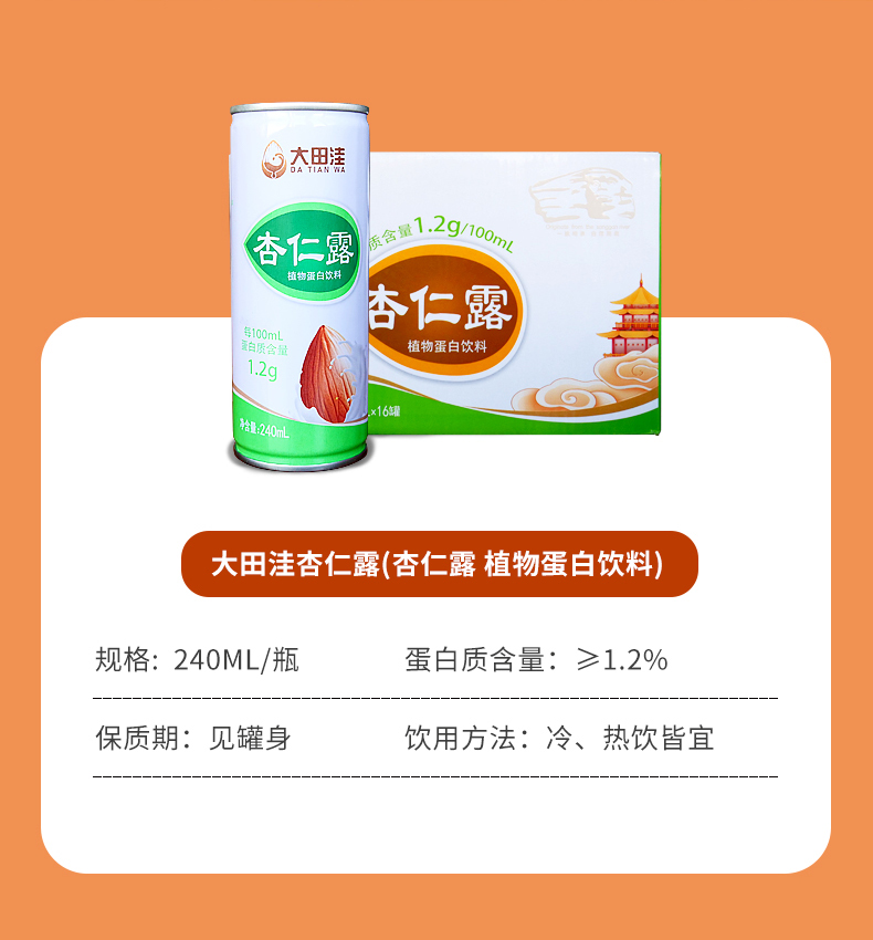优选丨大田洼杏仁露240ml*16罐 大田洼杏仁八宝粥320g*10罐