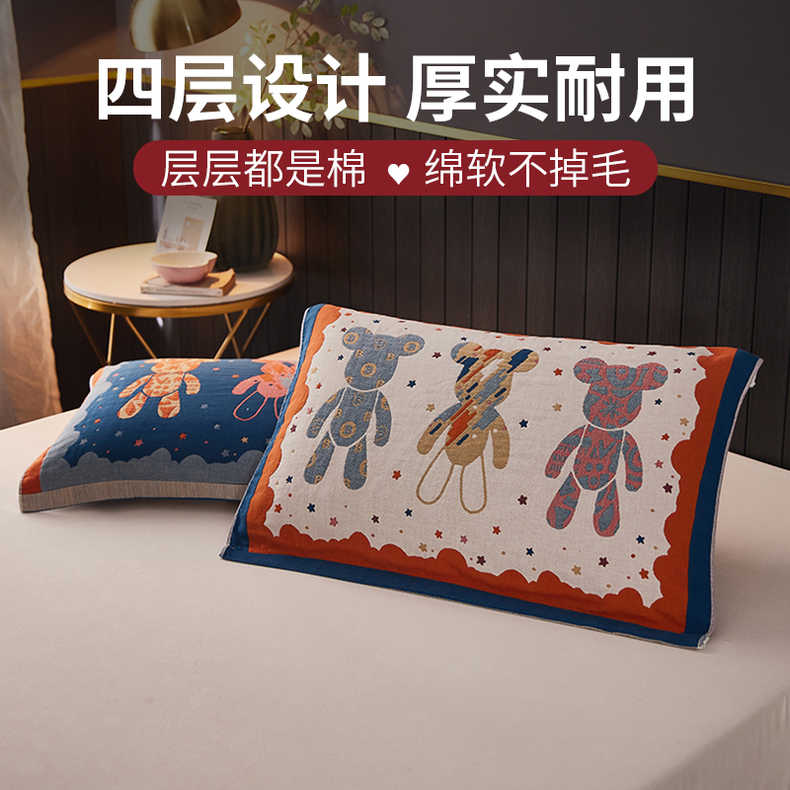 A类儿童枕巾纯棉一对装四层加厚长绒棉柔软纱布枕头垫巾