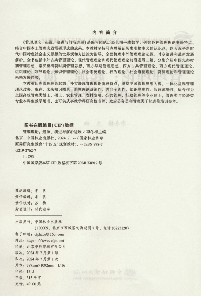 管理理论(起源演进与前沿进展国家林业和草原局研究生教育十四五规划教材) &2762