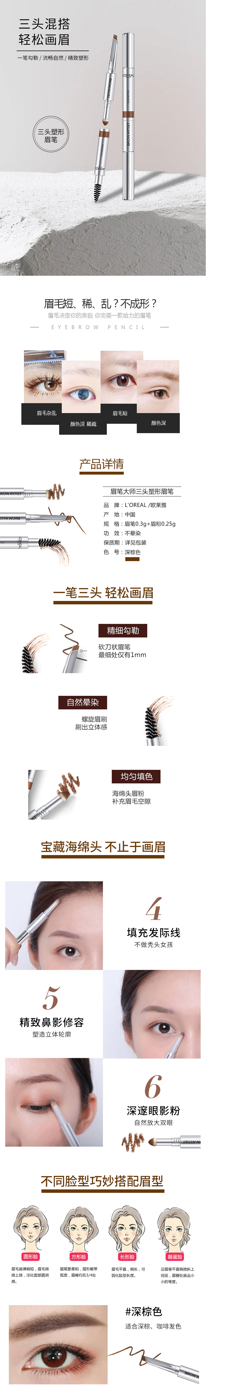 LOREAL新款大师 欧莱雅三头眉笔眉粉女初学者不脱妆自然持久 0.55g