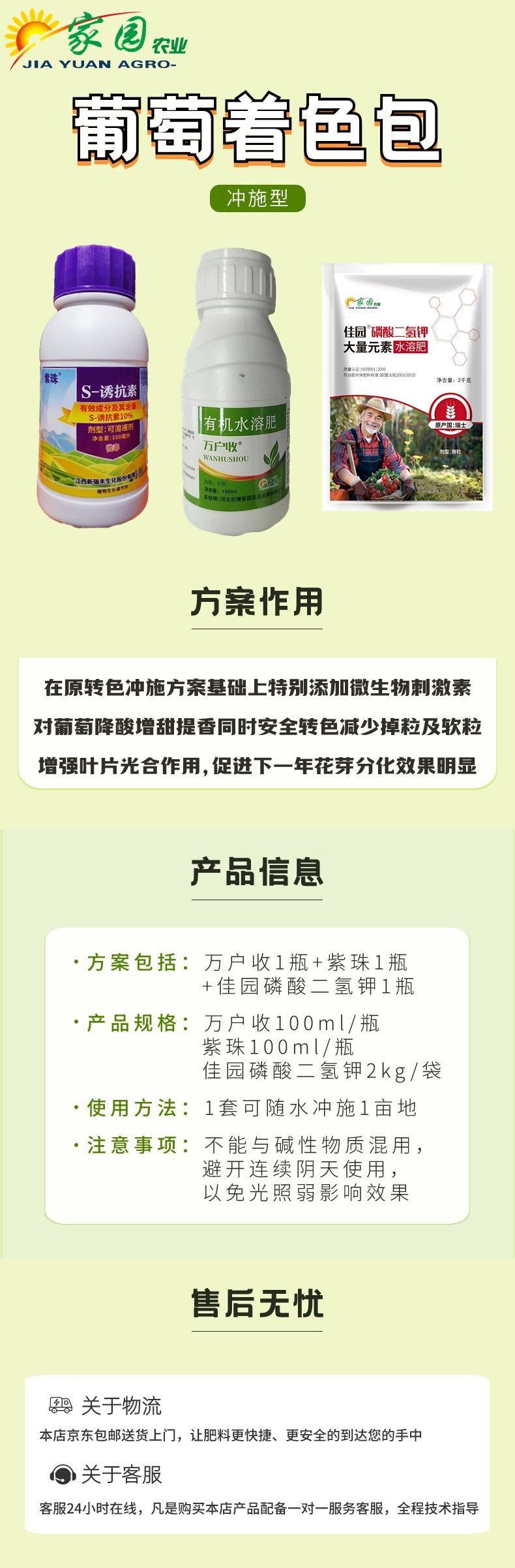 葡萄着色包(冲施型) 万户收100毫升1瓶+紫珠100毫升1瓶+佳园磷酸二氢钾2公斤1袋 一套一亩地