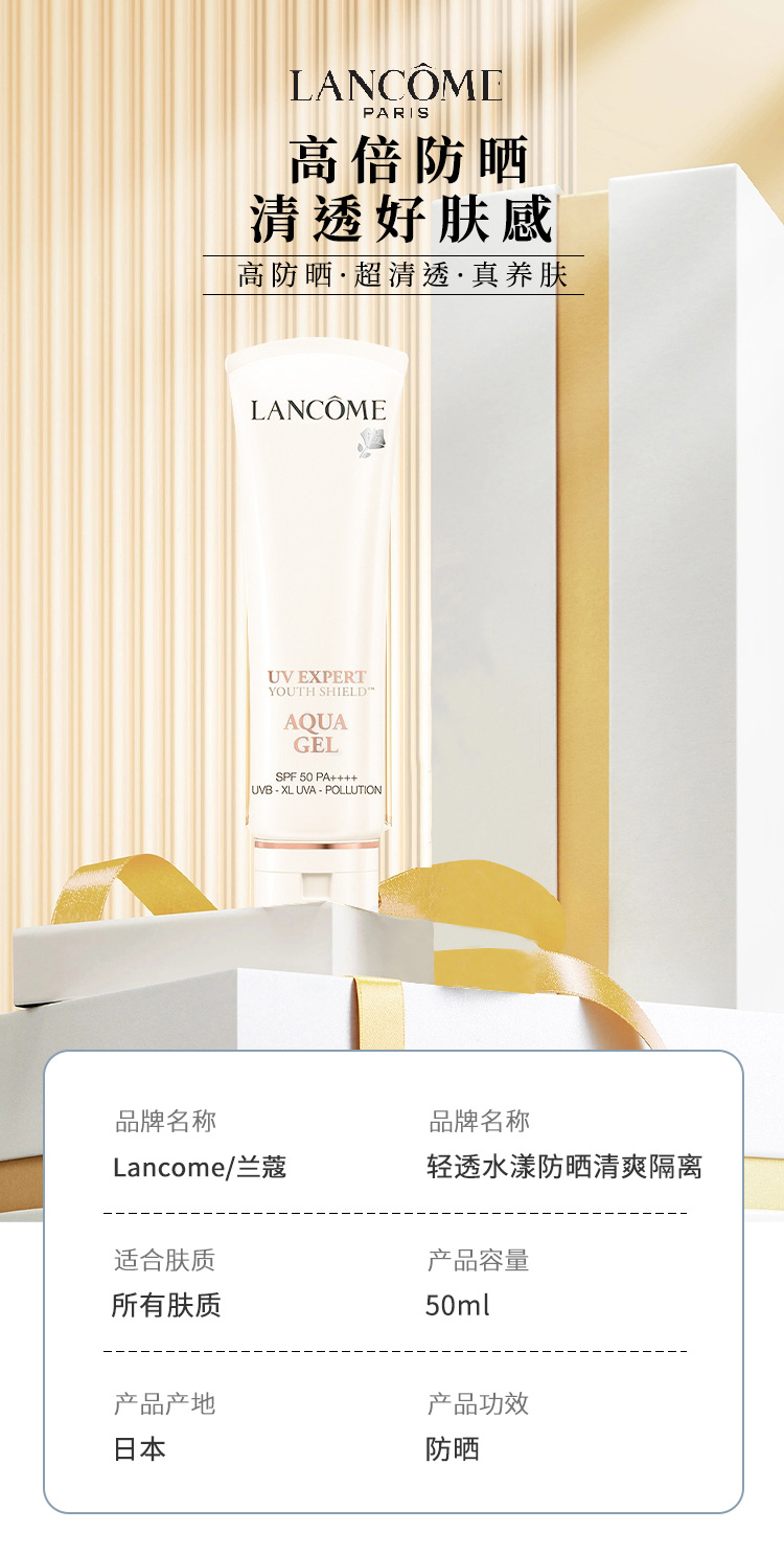 优选丨【保税直发】LANCOME/兰蔻 轻透水漾防晒清爽隔离50ml/瓶+LANCOME/兰蔻 轻透水漾防晒清爽隔离10ml/瓶(小样)