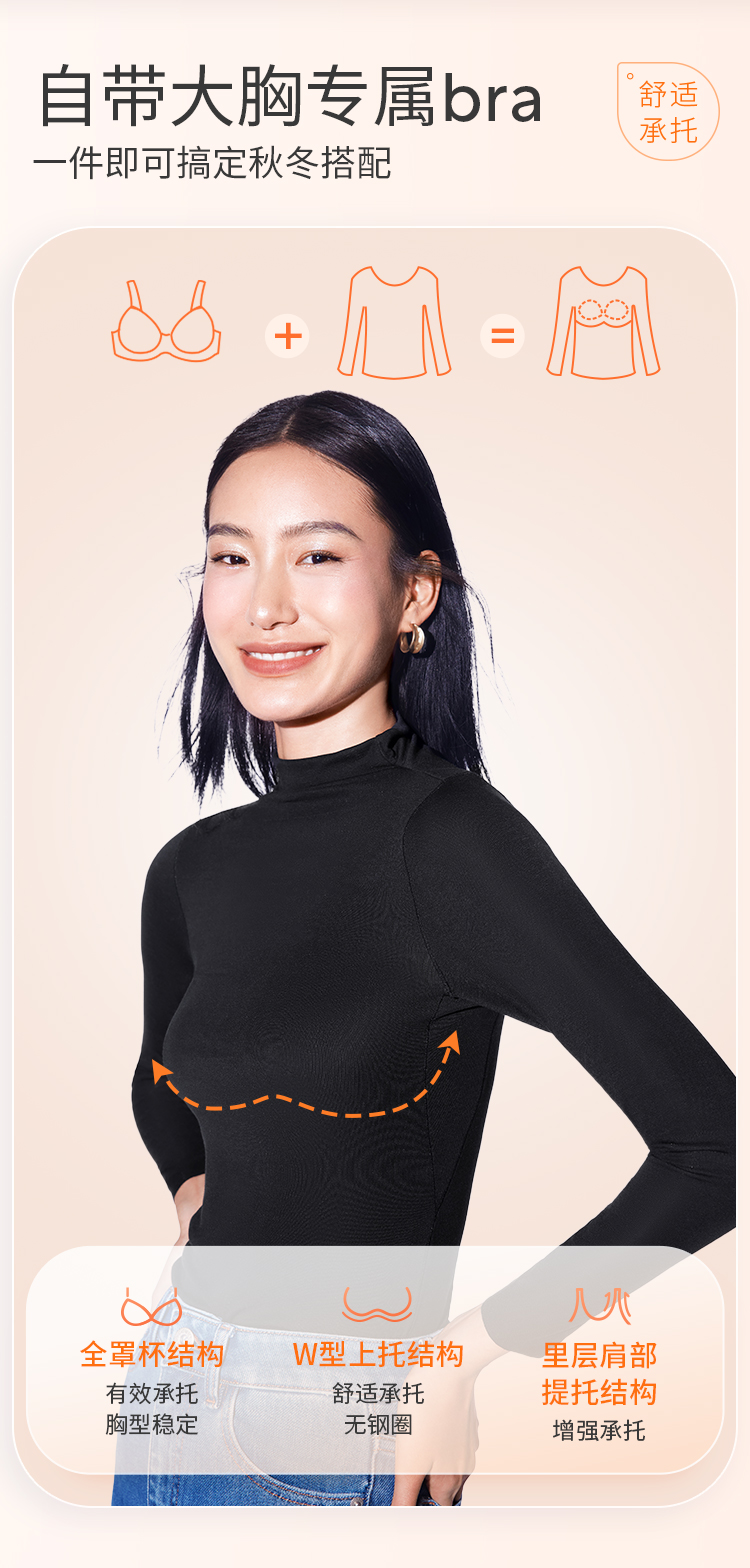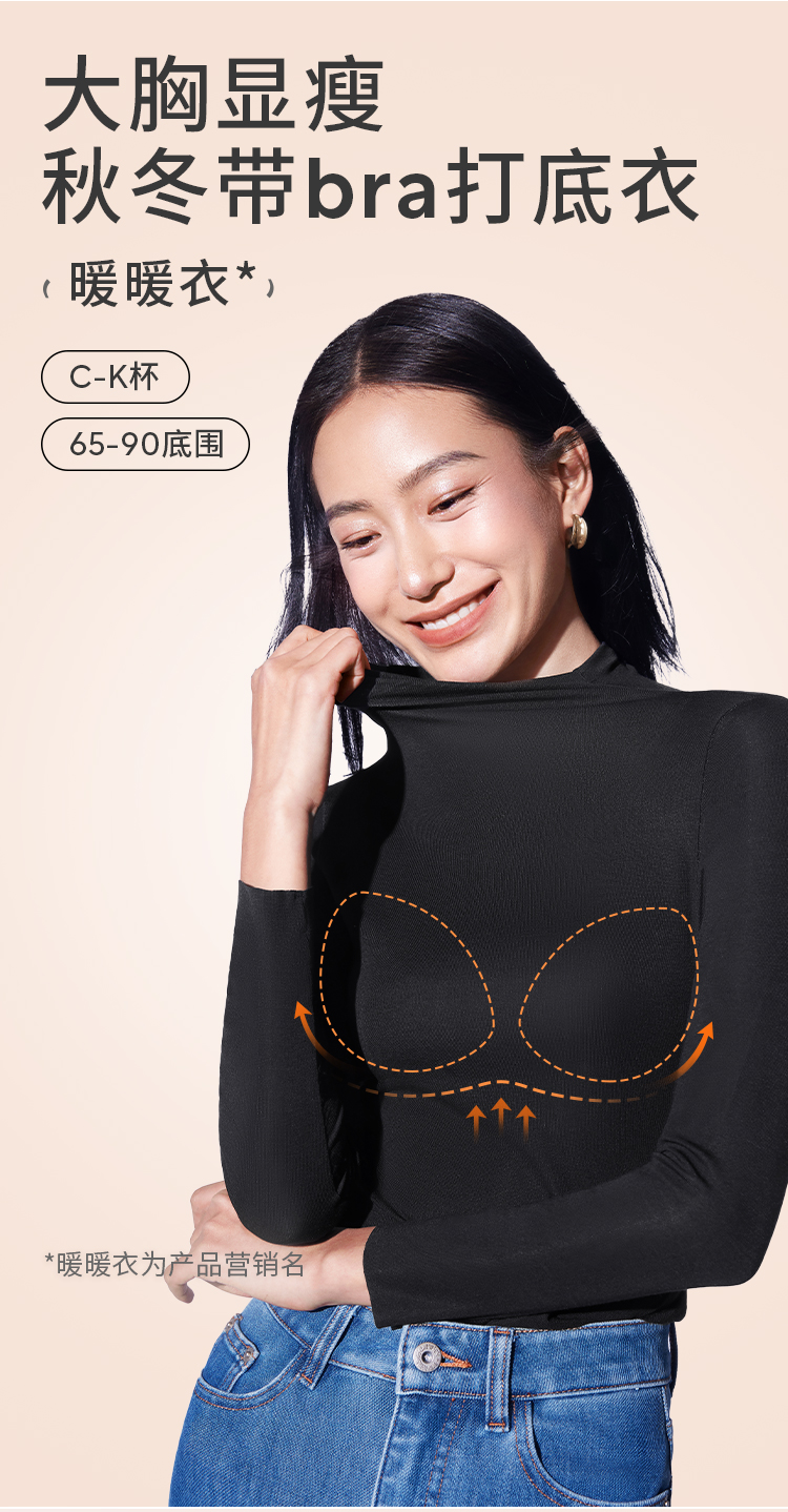 优选丨奶糖派大胸保暖文胸打底二合一免穿内衣打底衫显瘦无痕可外穿女士暖暖衣-fx