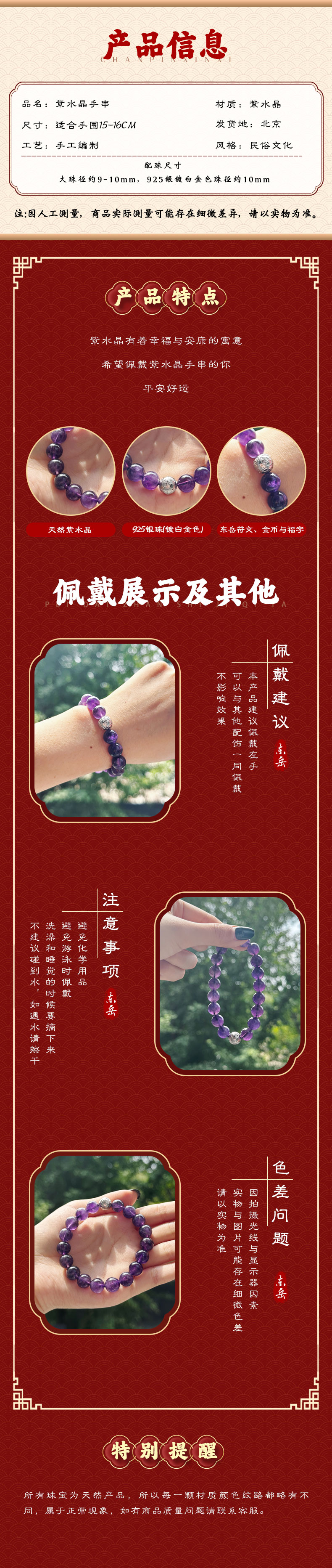 紫水晶银珠手串