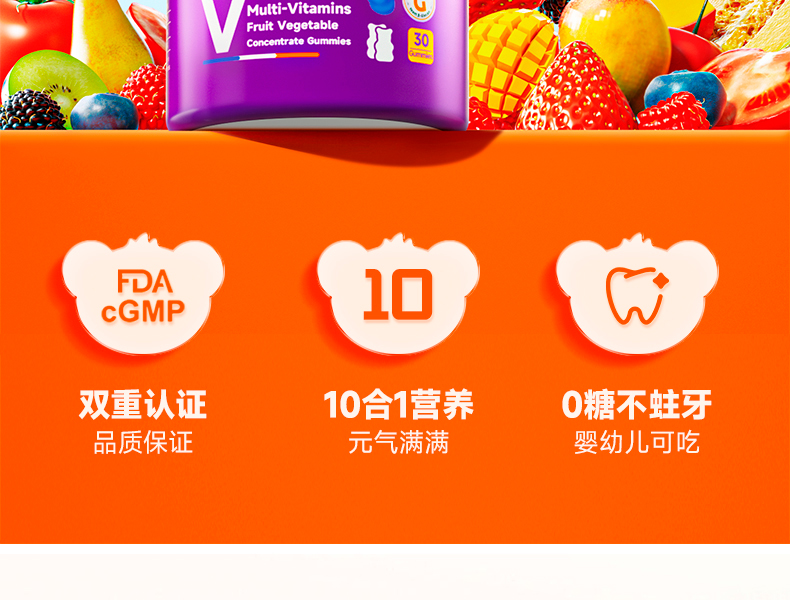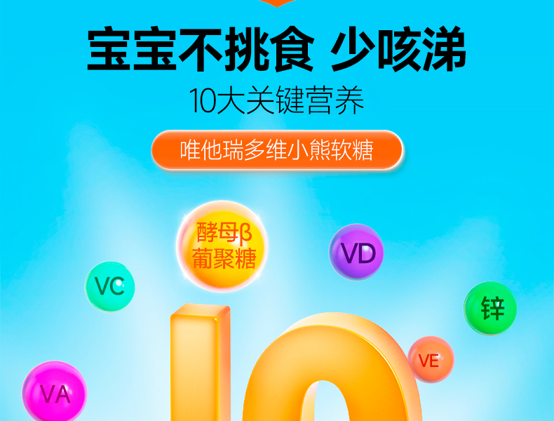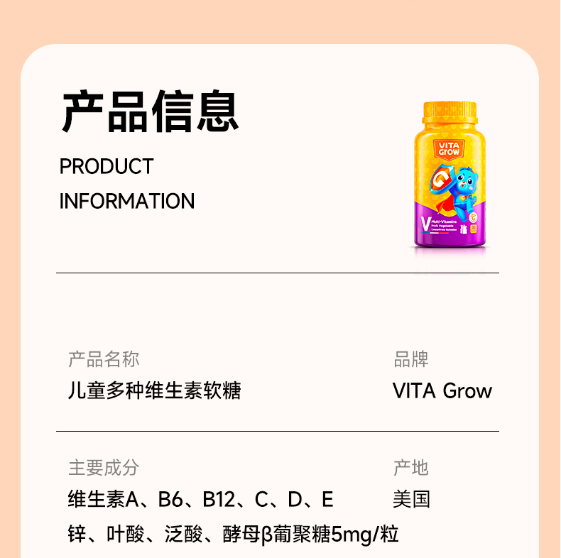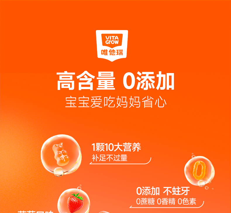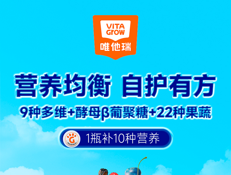 [ VITA Grow ] 唯他瑞多维软糖 儿童补锌补维生素A维生素B6补酵母β-葡聚糖(有效期至26年6月)