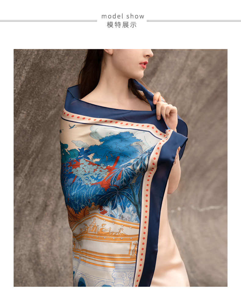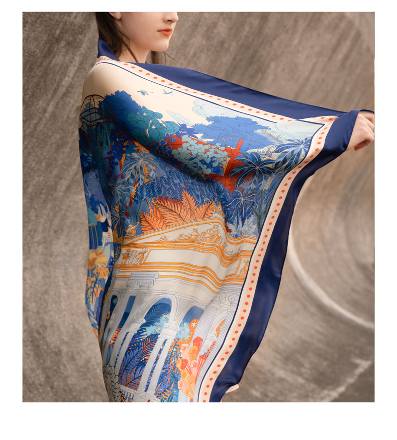 Soloseta真丝印花大方巾桑蚕丝围巾110*110丝绸披肩母亲节礼