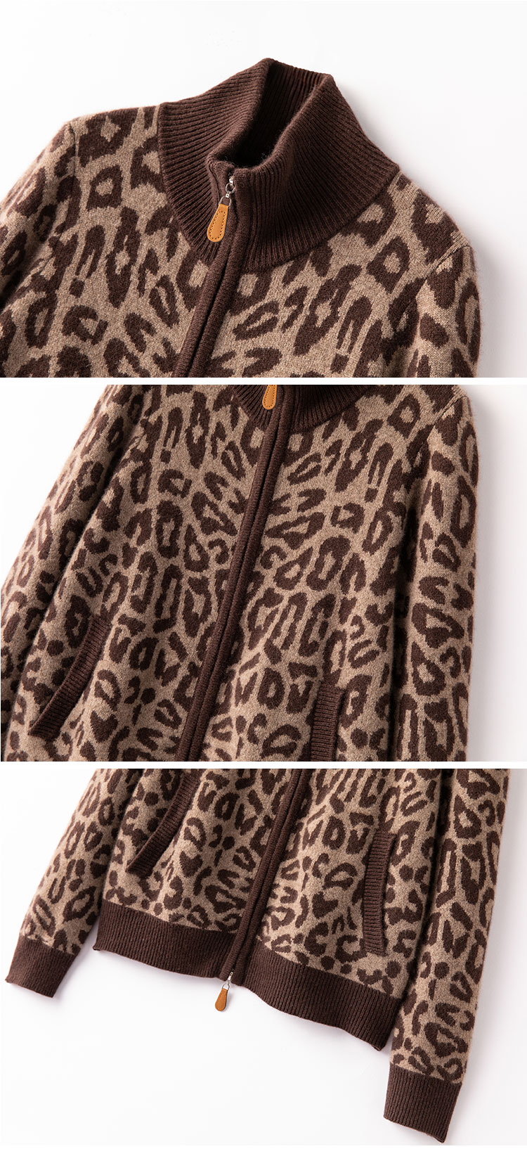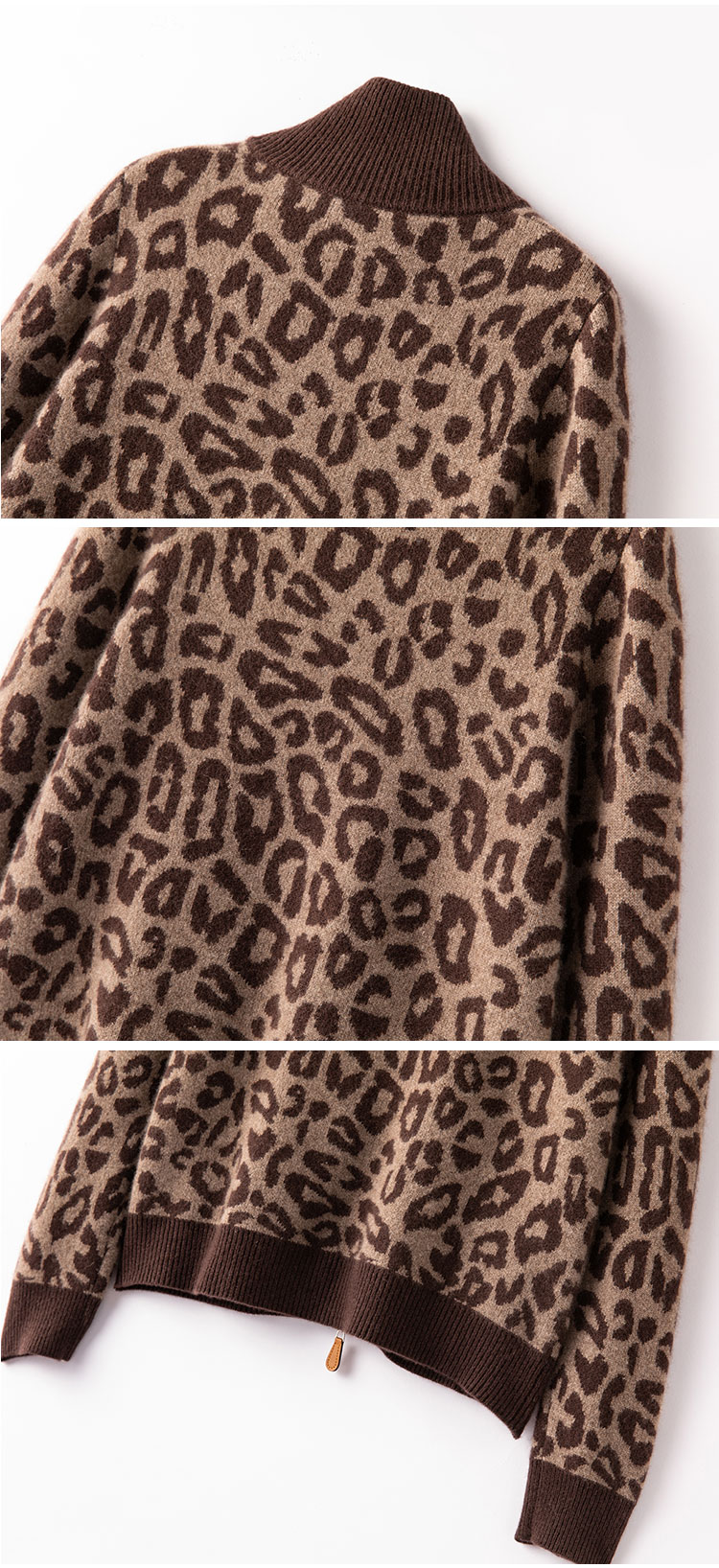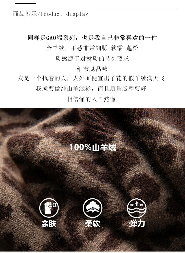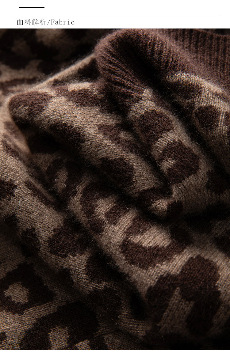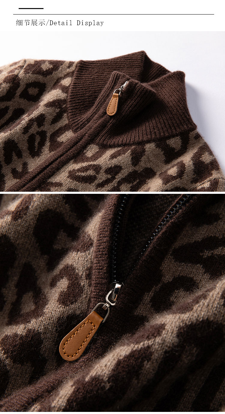高级感豹纹 baby小山羊绒开衫 显瘦 针织外套半高领BABY250504