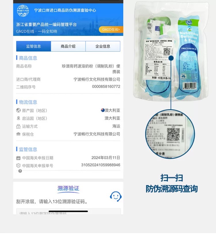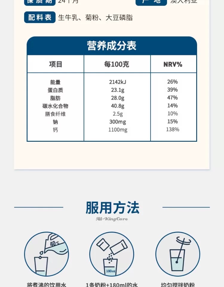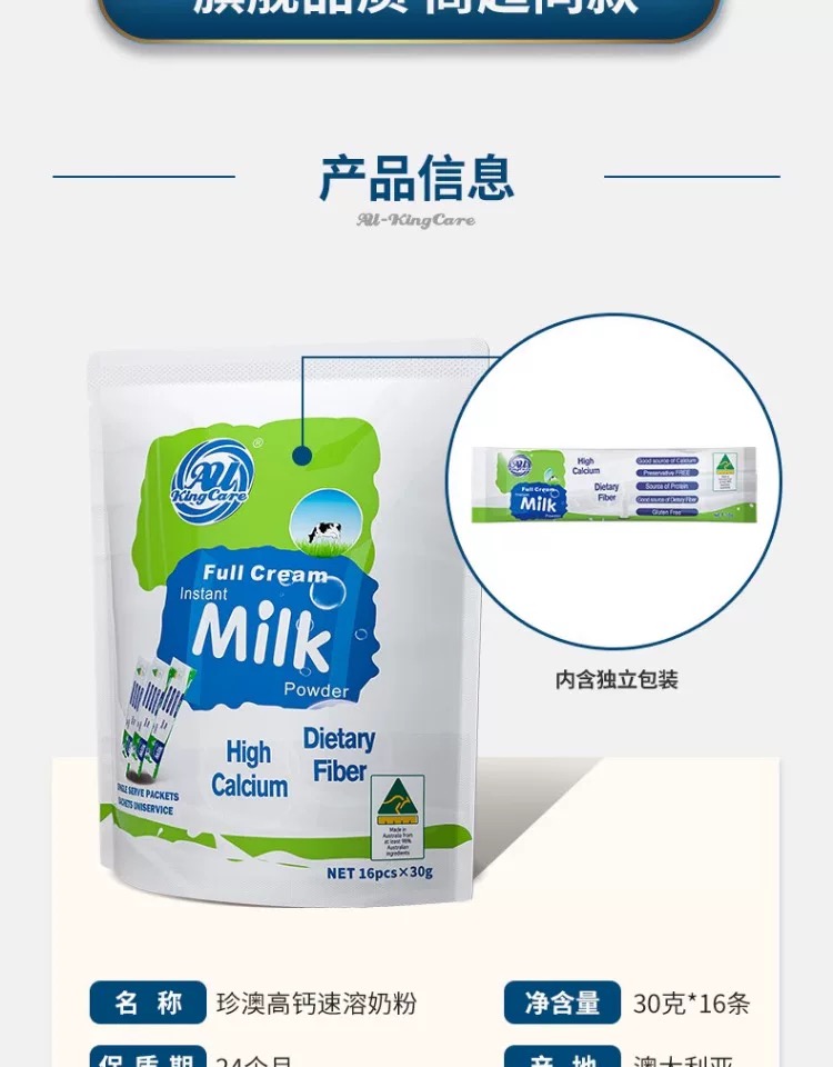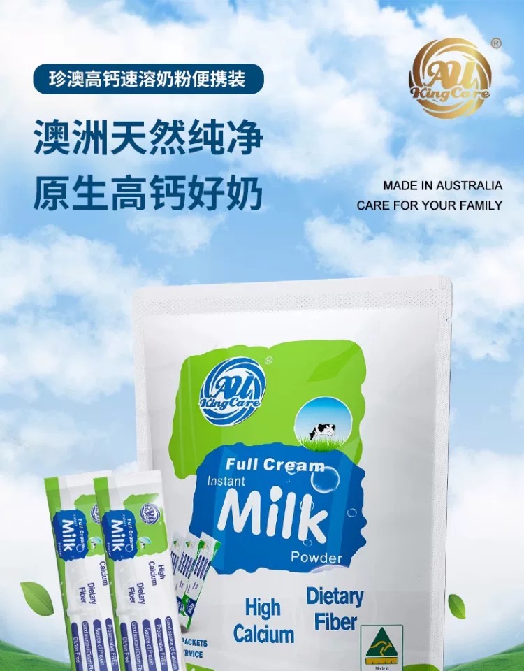 澳洲进口珍澳全脂高钙奶粉高蛋白无蔗糖成人旅行便携独立袋装速溶