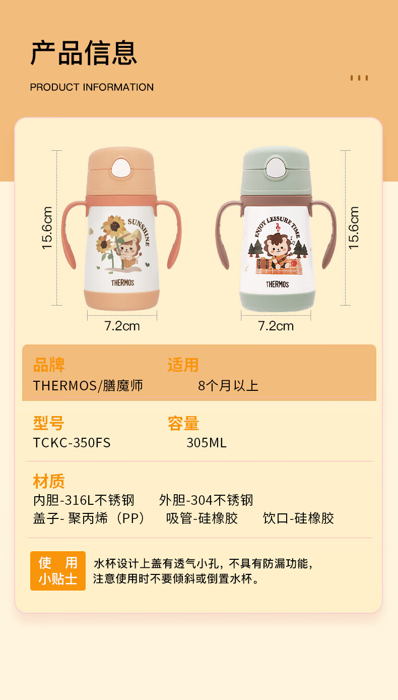 THERMOS 膳魔师 TCKC-305S OR(CP)350ml 保温杯