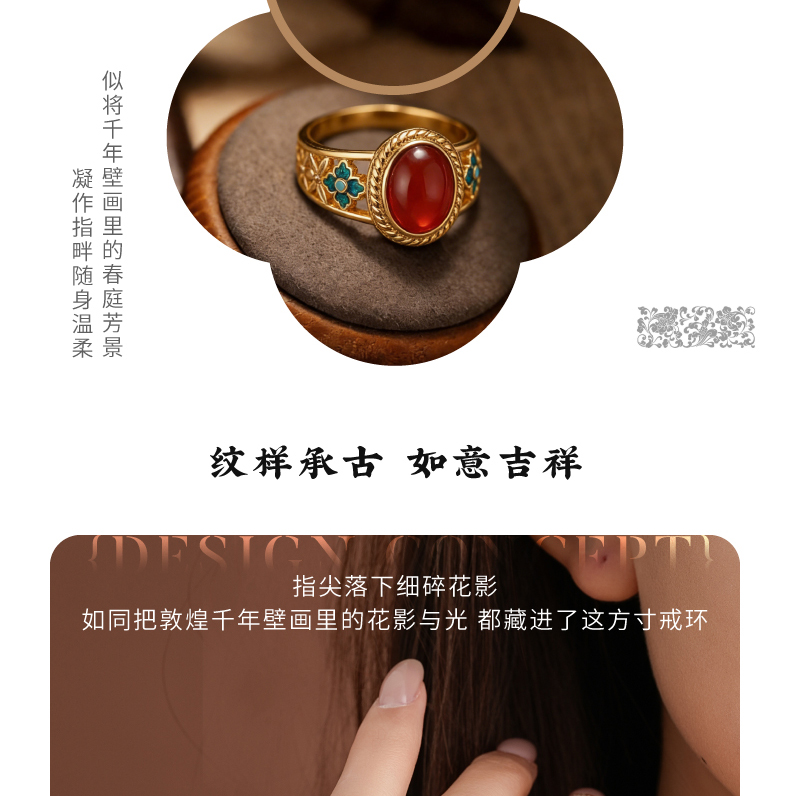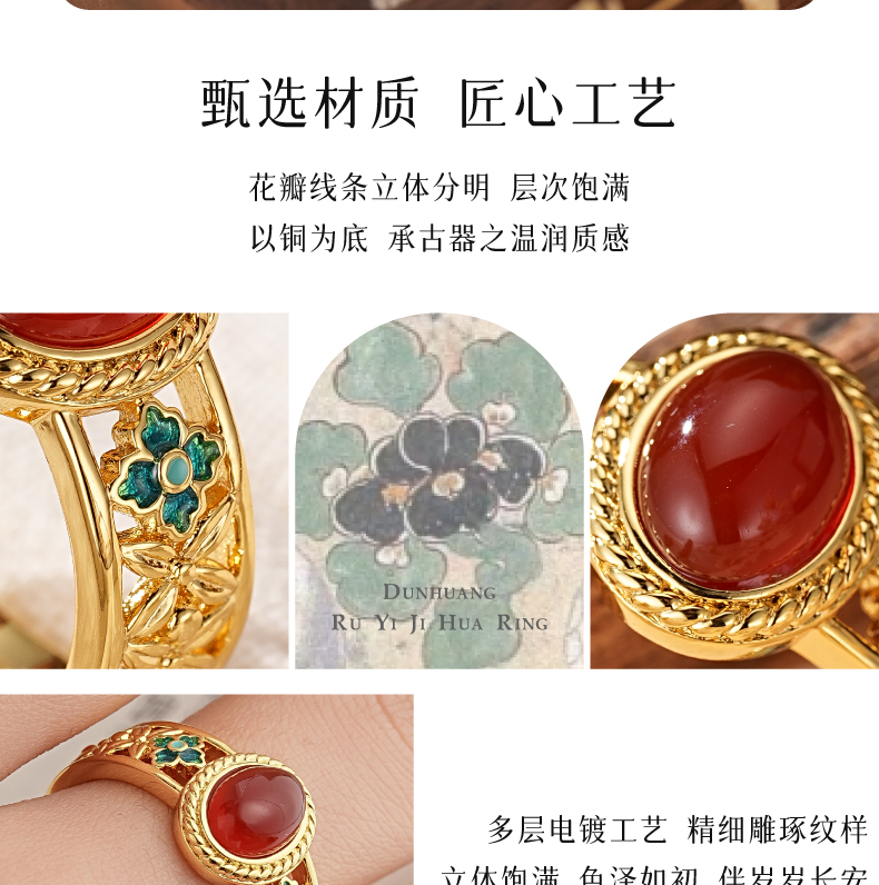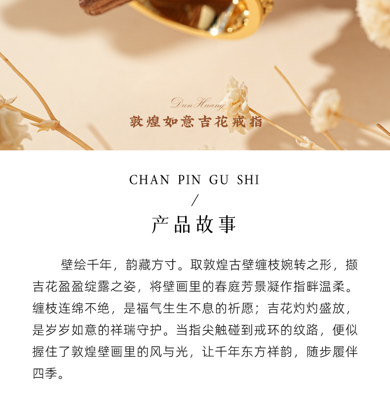 敦煌研究院【敦煌如意吉花戒指】博物馆文创戒指女士款轻奢高颜值