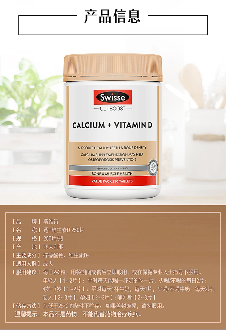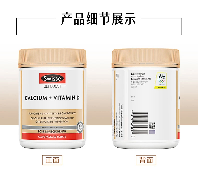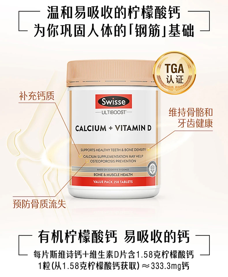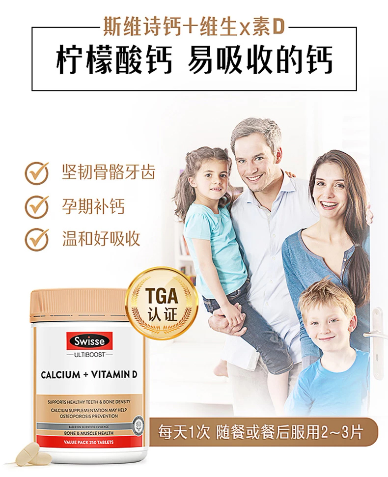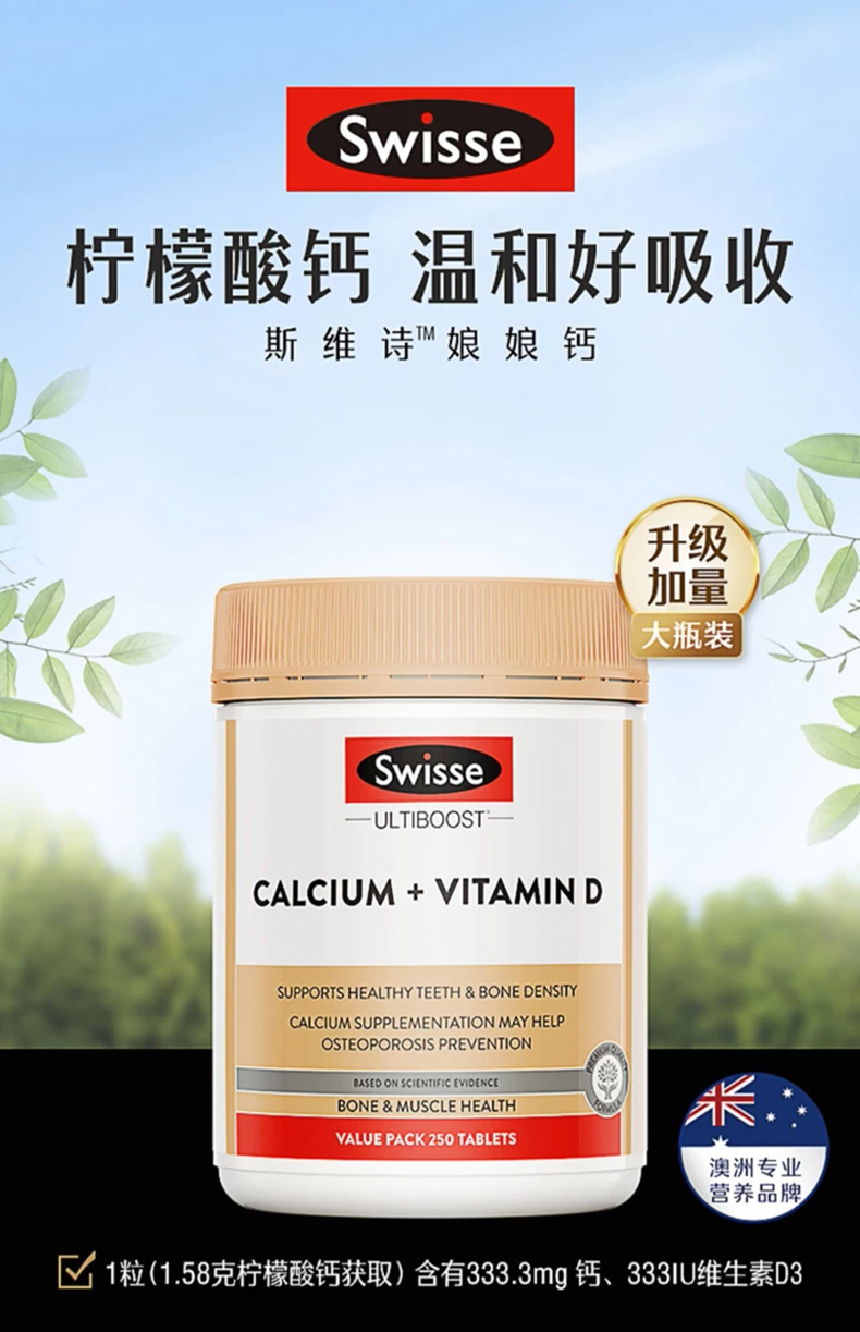 【保税仓】Swisse斯维诗钙+维生素D片250片