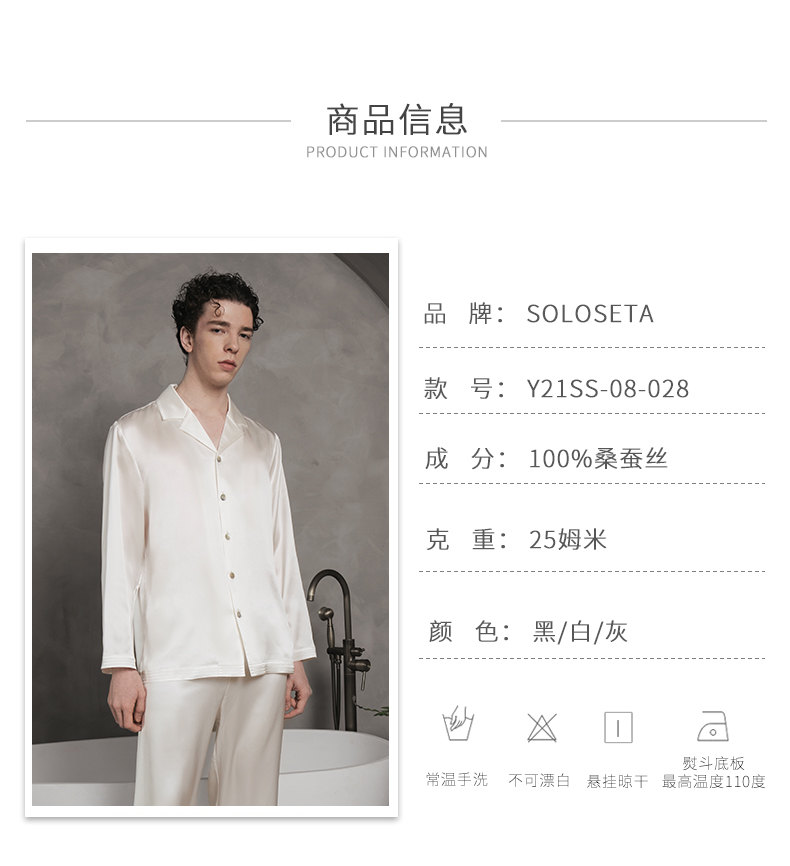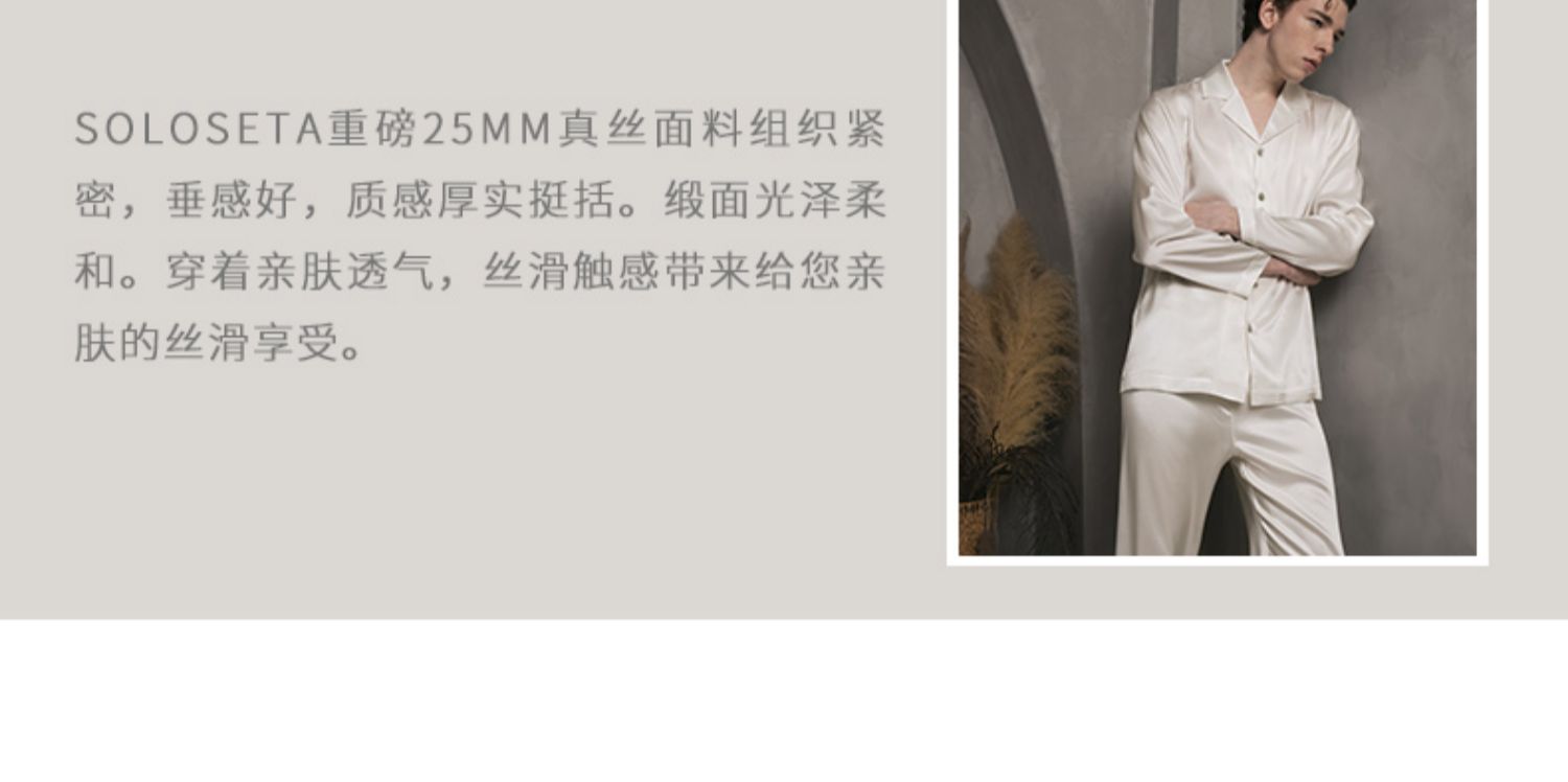 Solo seta25姆米重磅真丝睡衣桑蚕丝男士高端家居服套装送礼秋冬