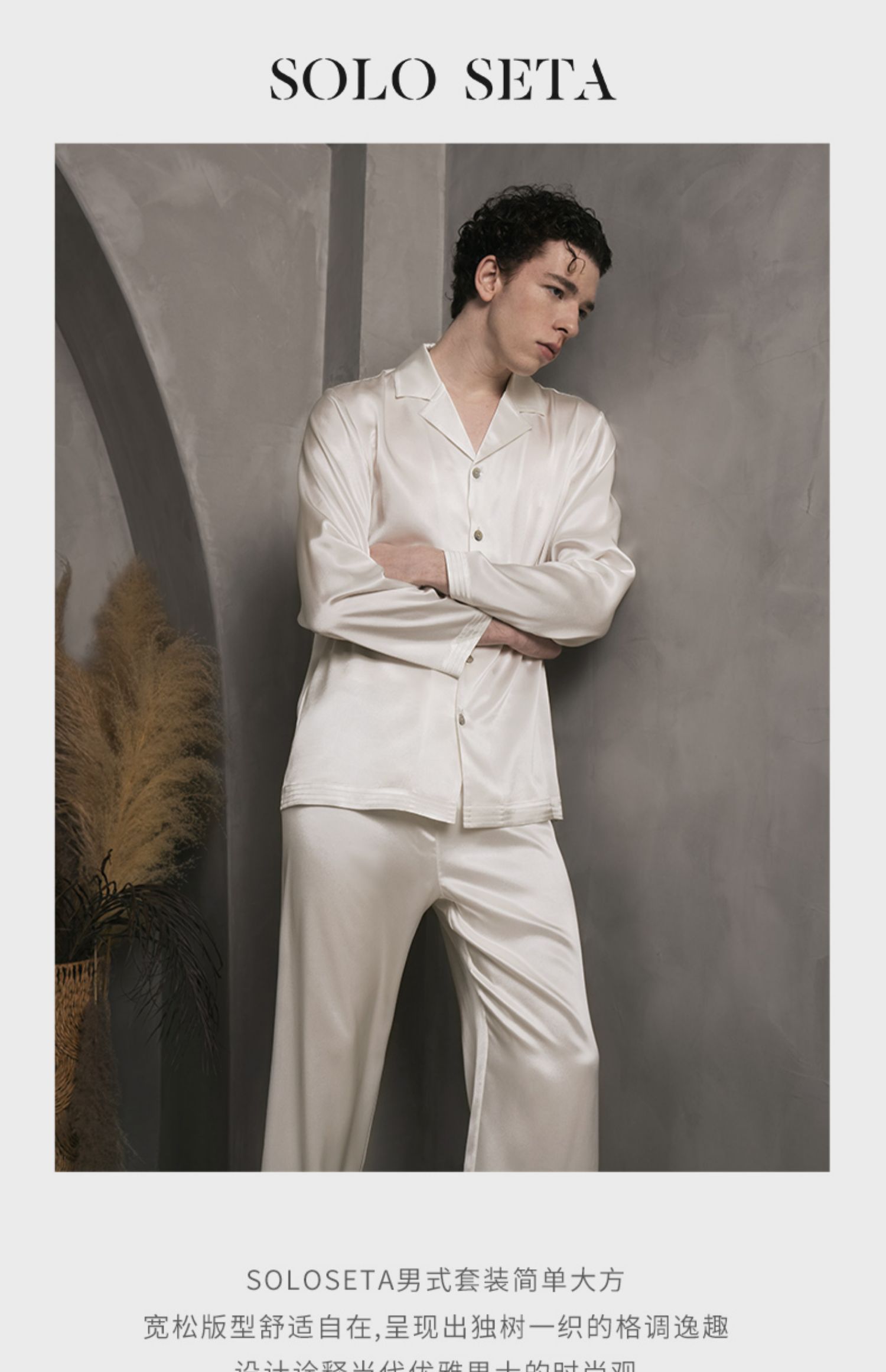 - soloseta专注于真丝织物,灵感源自意大利语,中文含义为“只做真丝”的意思。让睡衣变时尚,居家和外出瞬间切换,使其更具有出街,度假,参加宴会等功能。