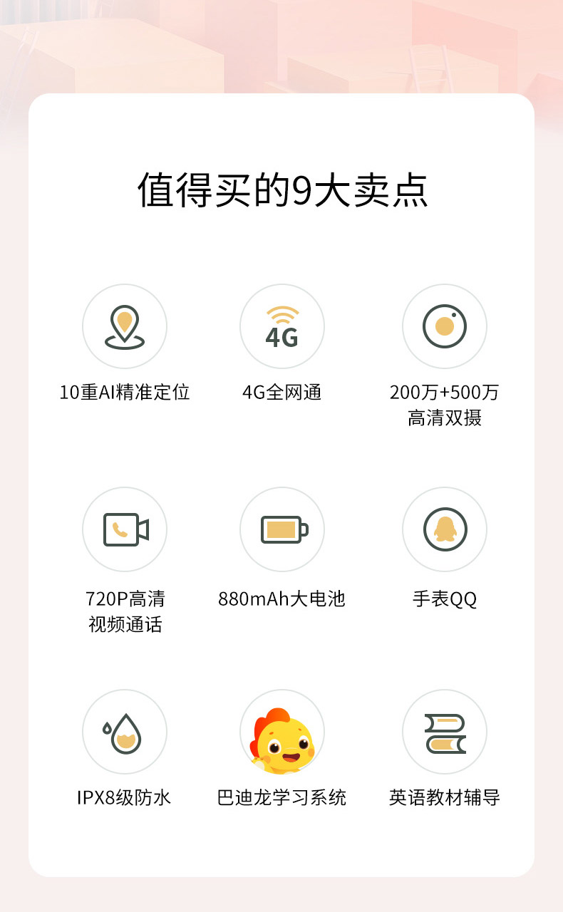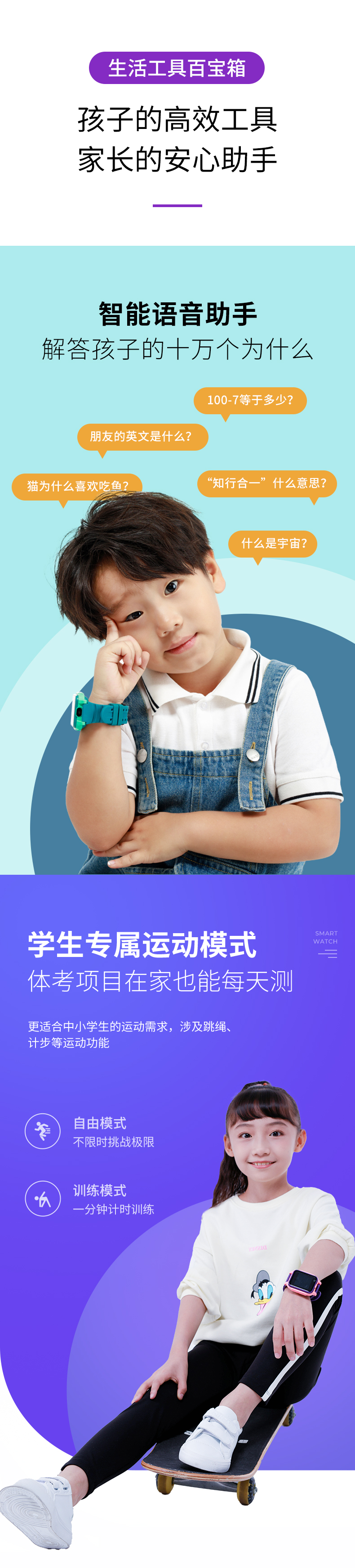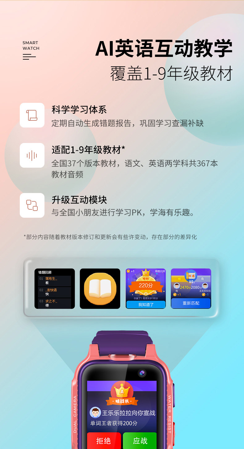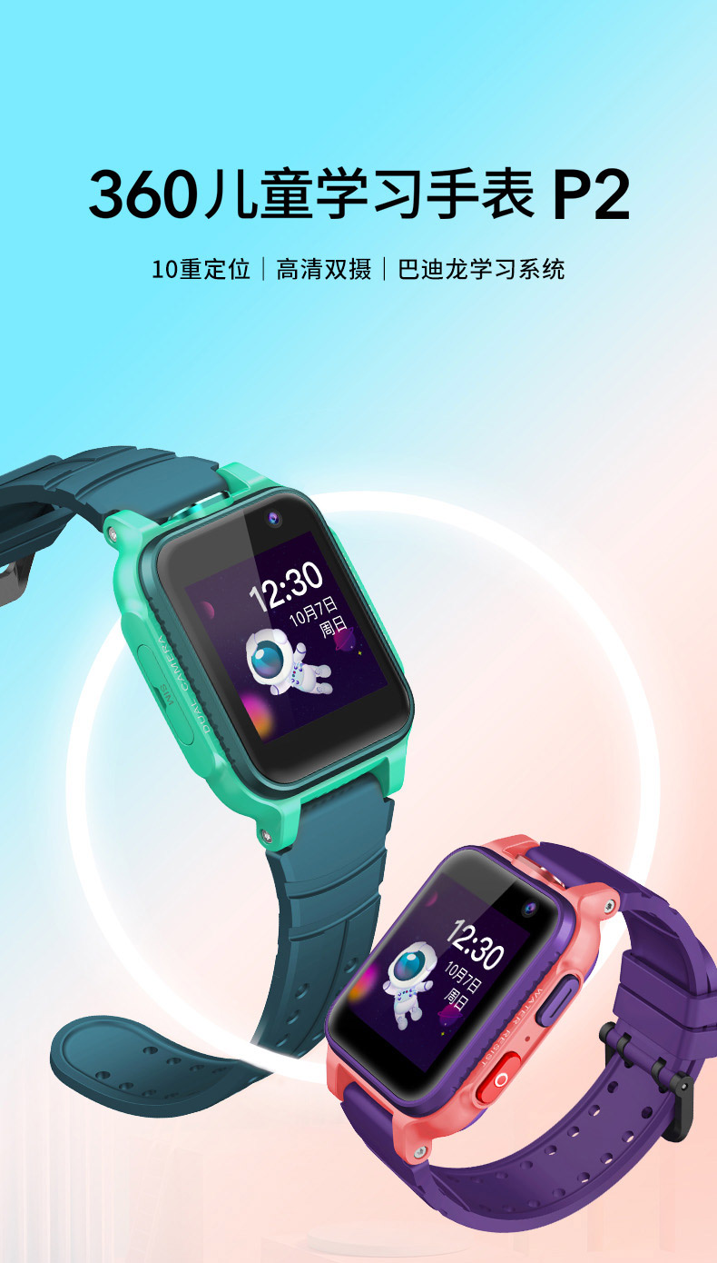 360儿童电话学习手表P2 4G全网通视频通话 防水QQ交友 智能语音问答跟读翻译 精准定位拍照手表男女孩晶石紫
