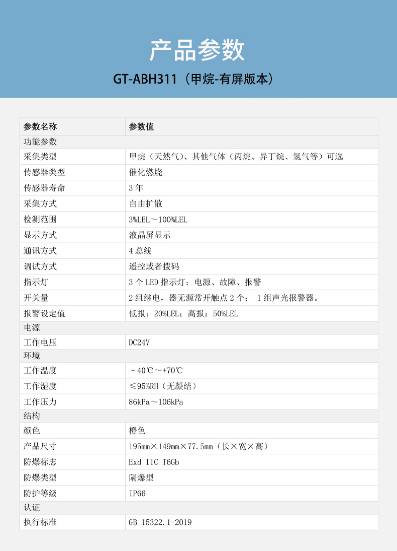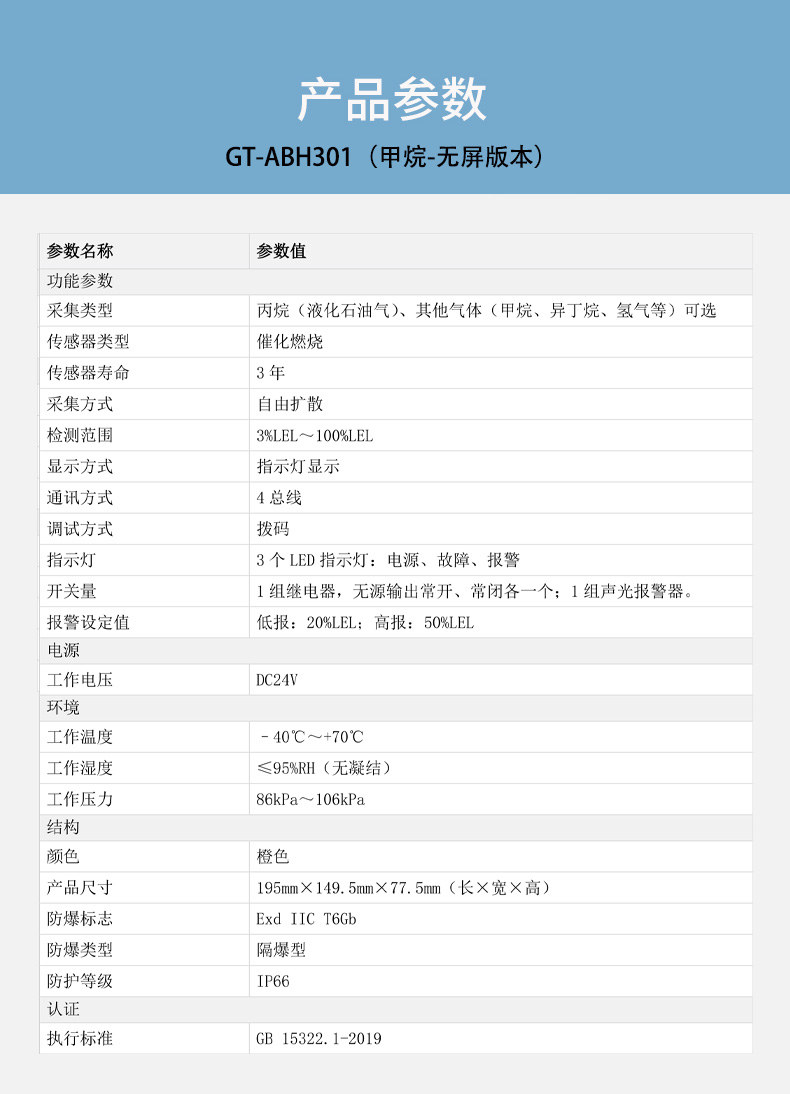总线型工业及商业用途点型可燃气体探GT-ABH3