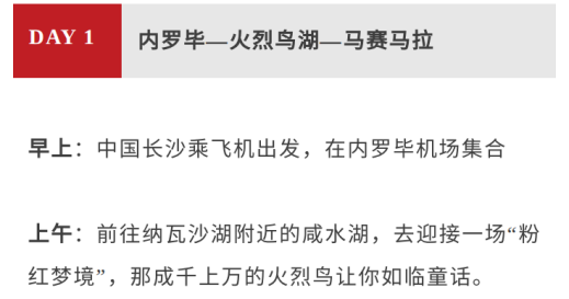 本活动行程将根据航班,天气,自然保护区的实际情况及未知因素的变化而适当调整,具体行程以当地实际安排为准。