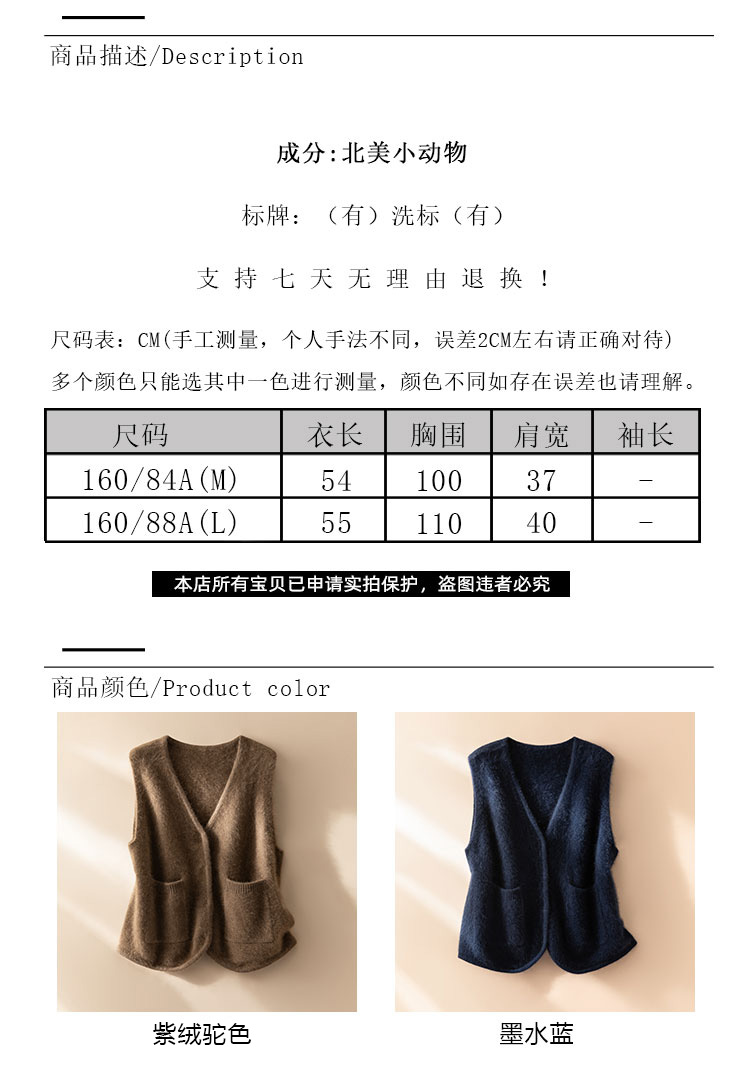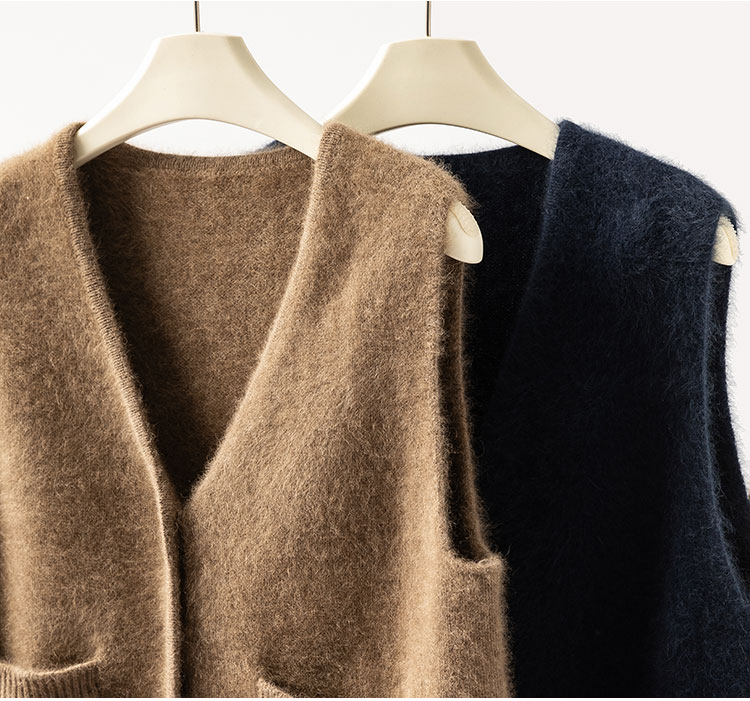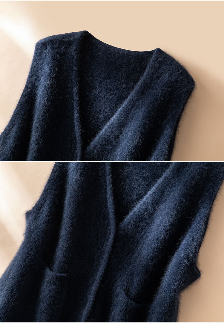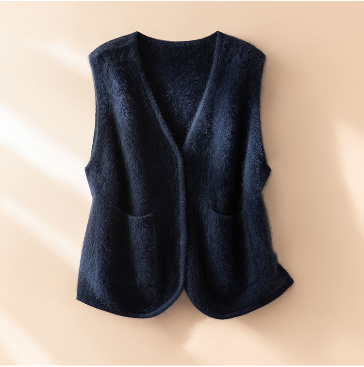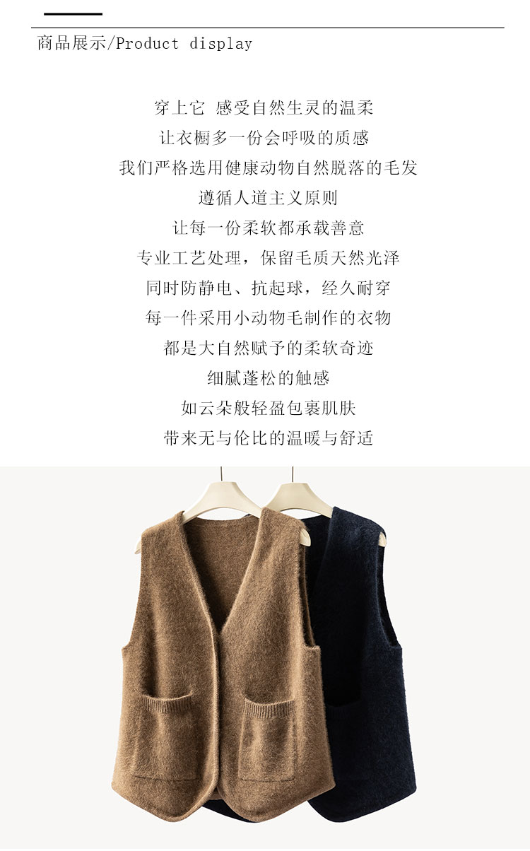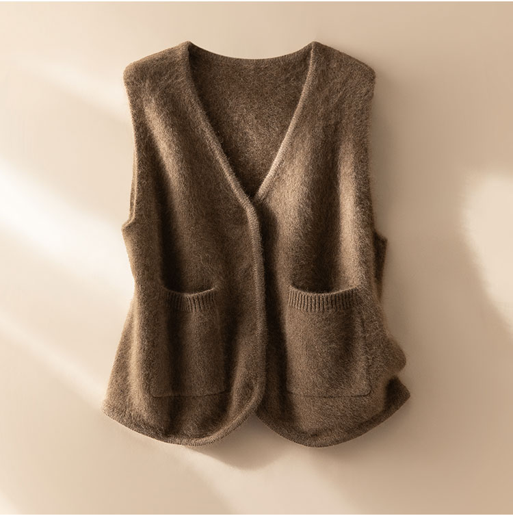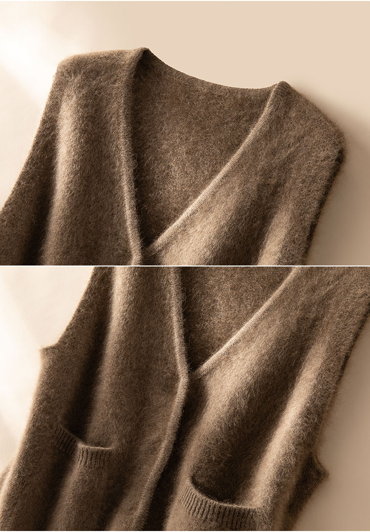 北美小动物系列~V领针织马甲女简约外穿口袋背心坎肩XDW260515