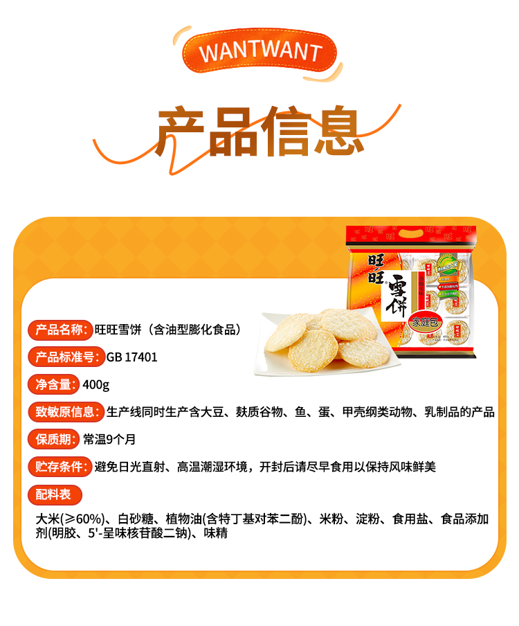 旺旺 经典口味年节限定旺旺雪饼400g