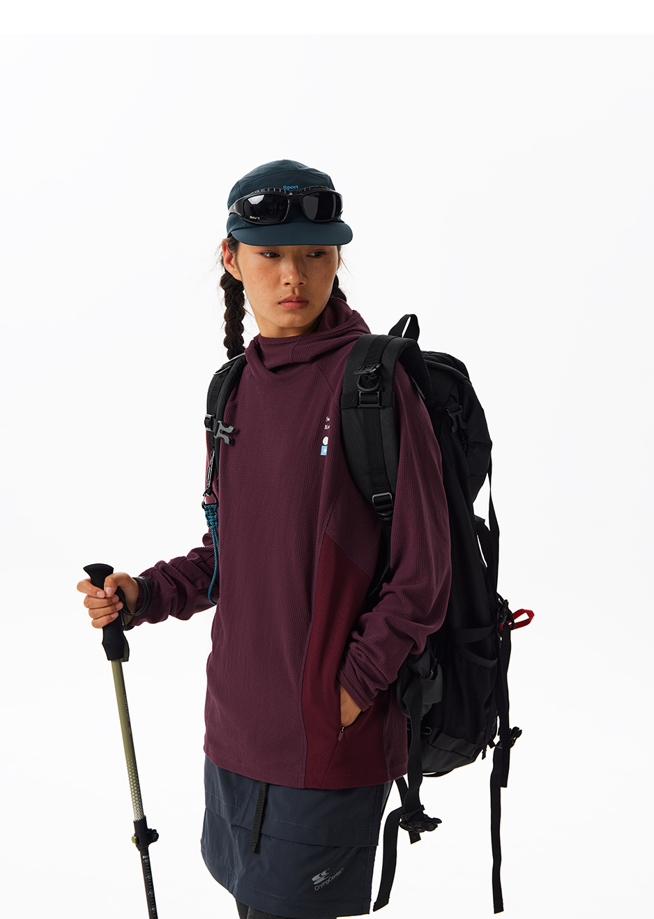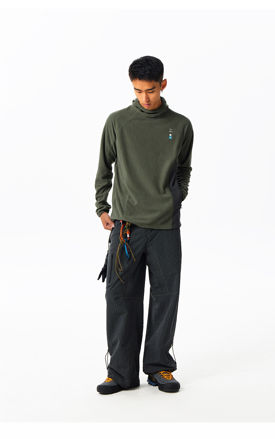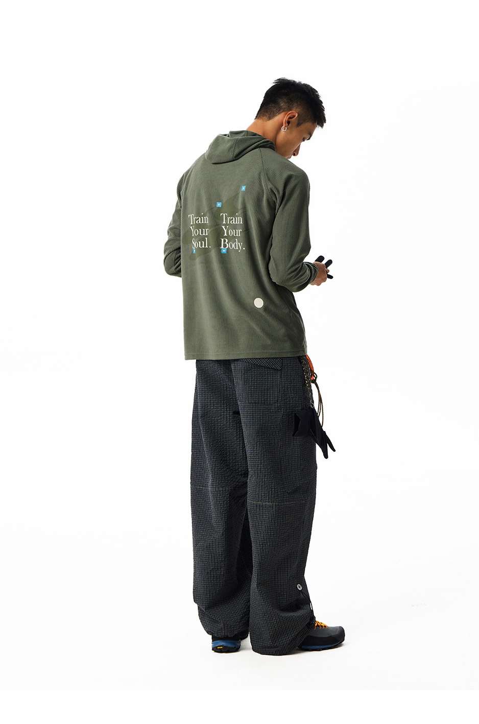 CryingCenter抗静电绒面华夫格哈苏线撞色运动长袖户外连帽衫男女