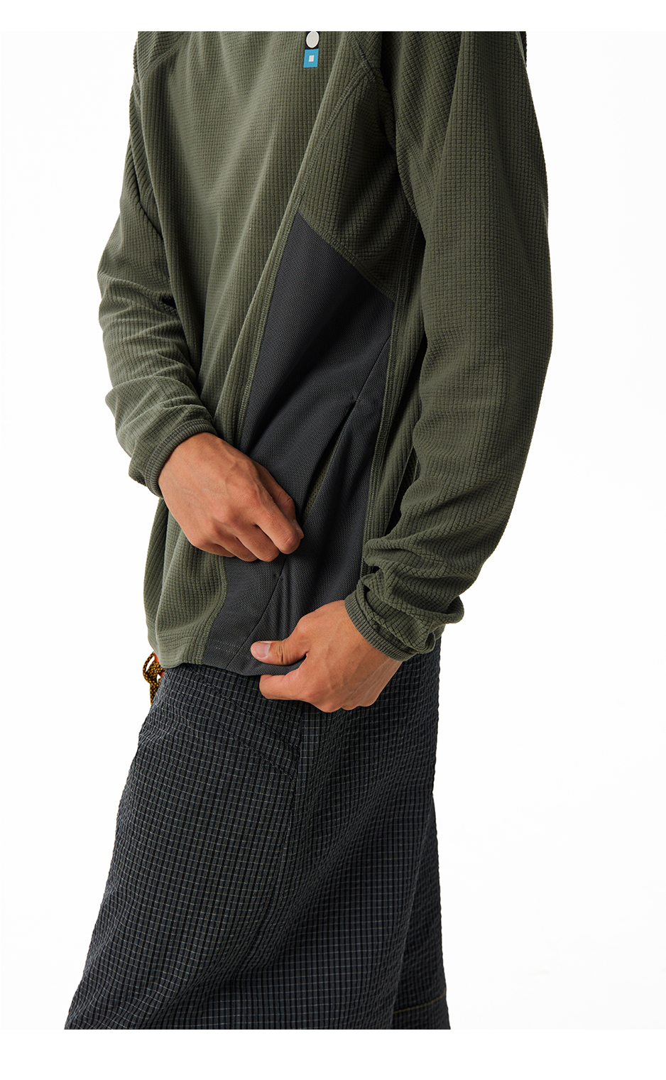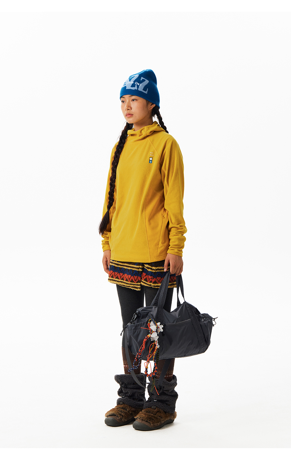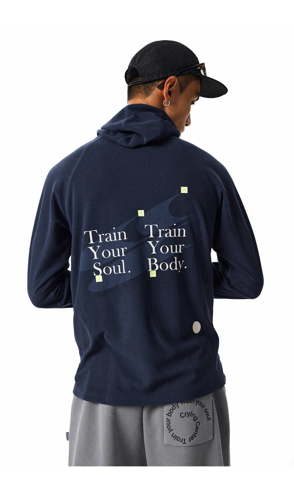 CryingCenter抗静电绒面华夫格哈苏线撞色运动长袖户外连帽衫男女