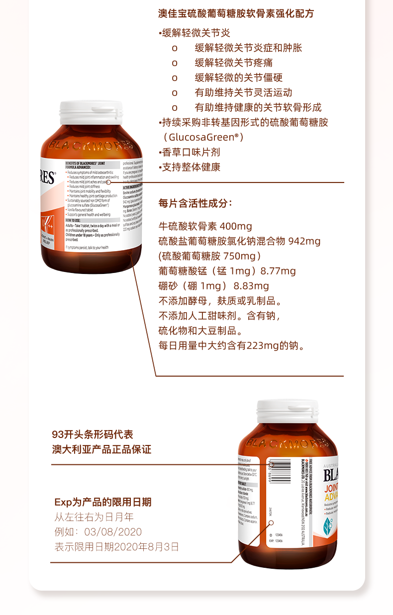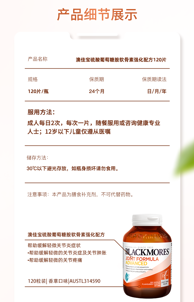 【保税仓】澳佳宝Blackmores澳佳宝维骨力片软骨素120片