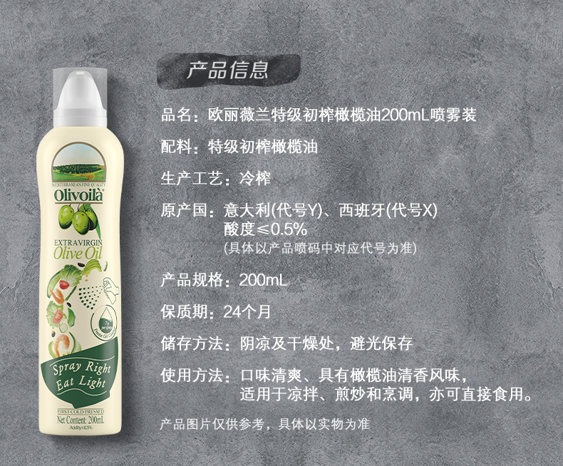 欧丽薇兰特级初榨橄榄油喷雾200ml