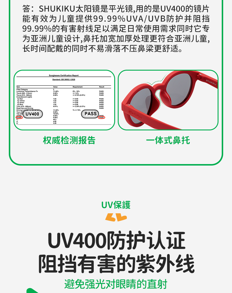 shukiku 儿童太阳镜 镀膜片 黑色 7-10岁
