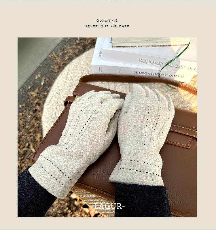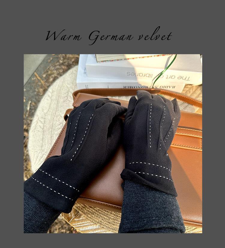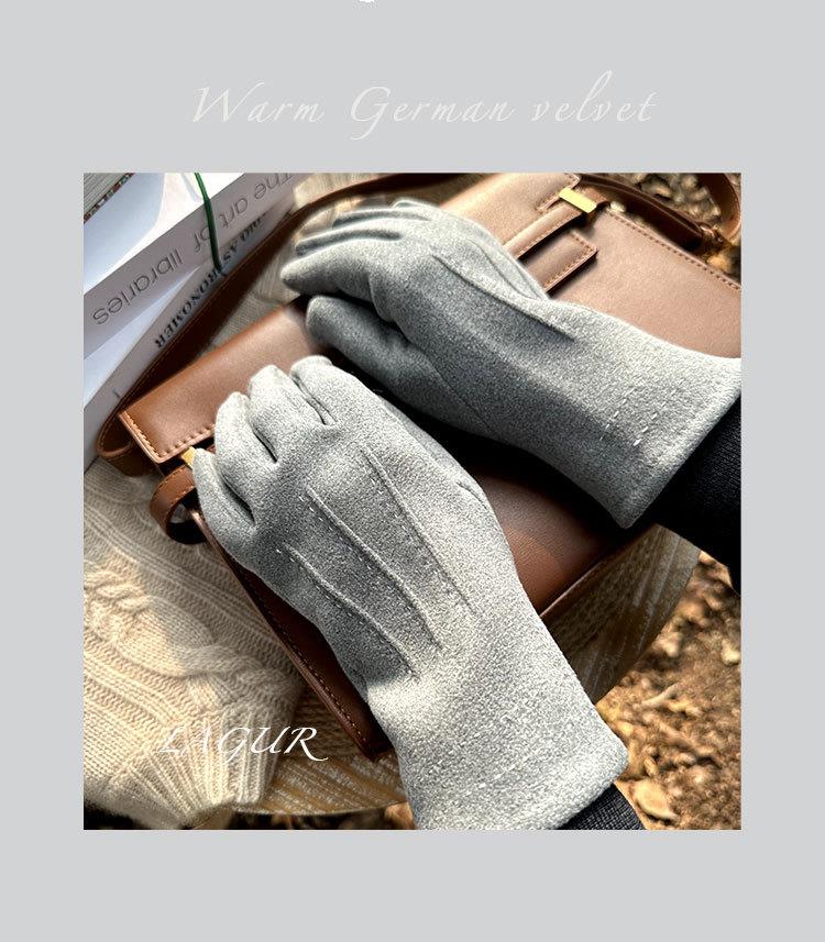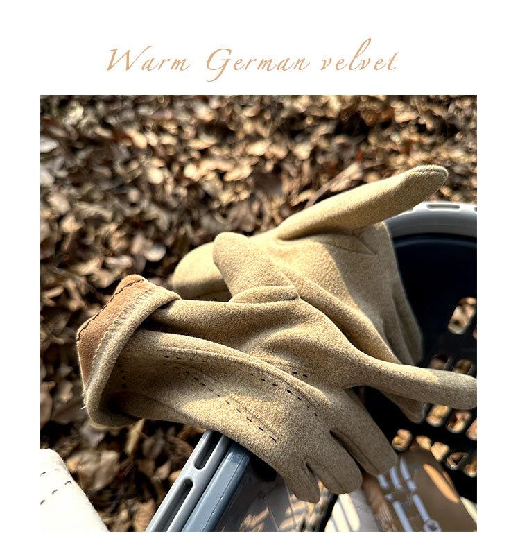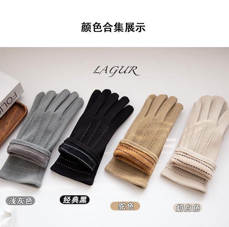 【加厚加绒可触屏显瘦德绒保暖手套】女冬季骑车防寒时尚