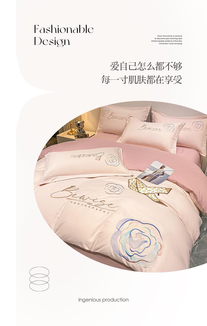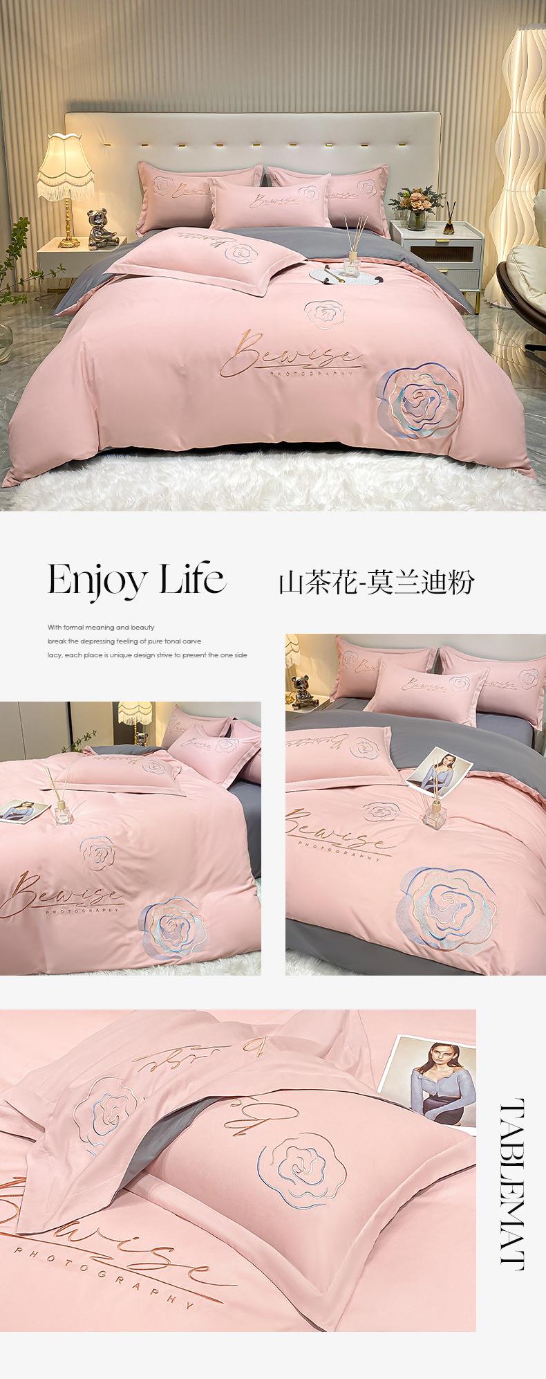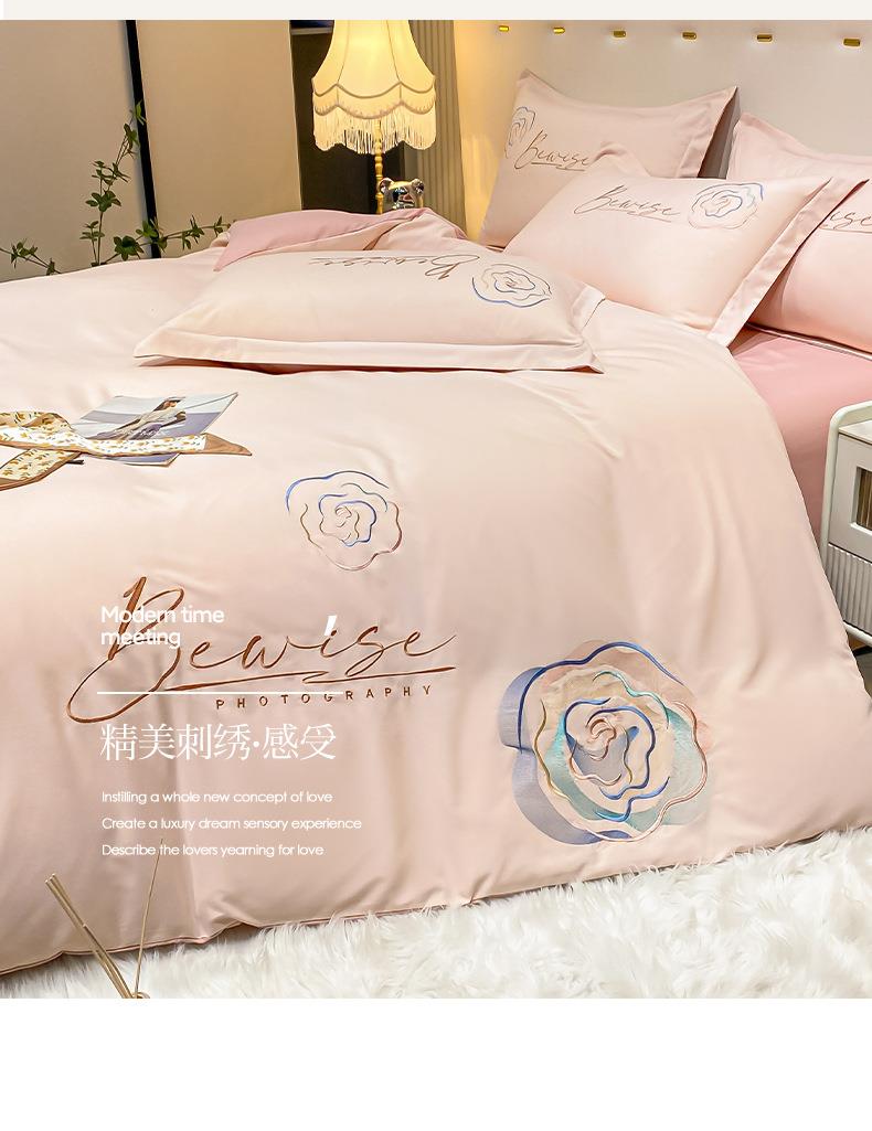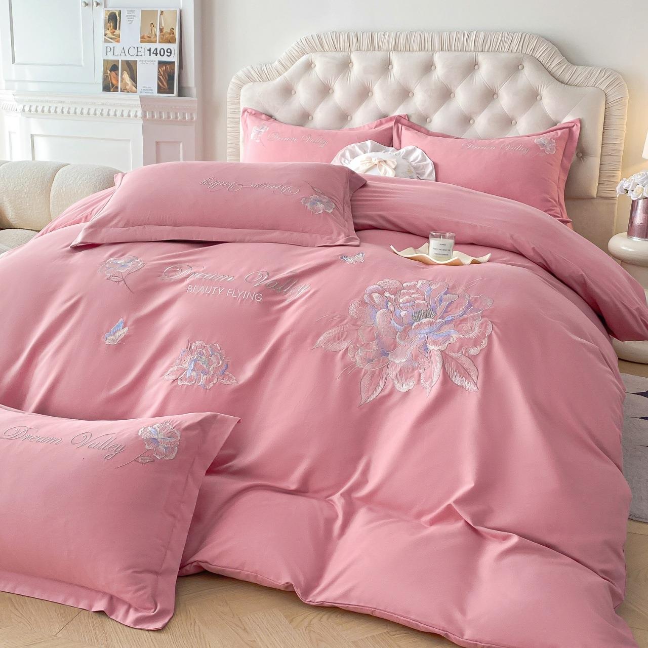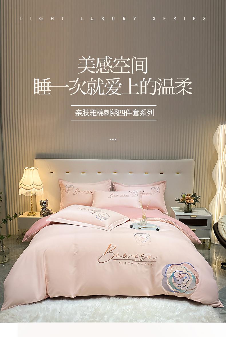 【亲肤棉刺绣磨毛轻奢四件套】刺绣磨毛床单款四件套纯色床上用品