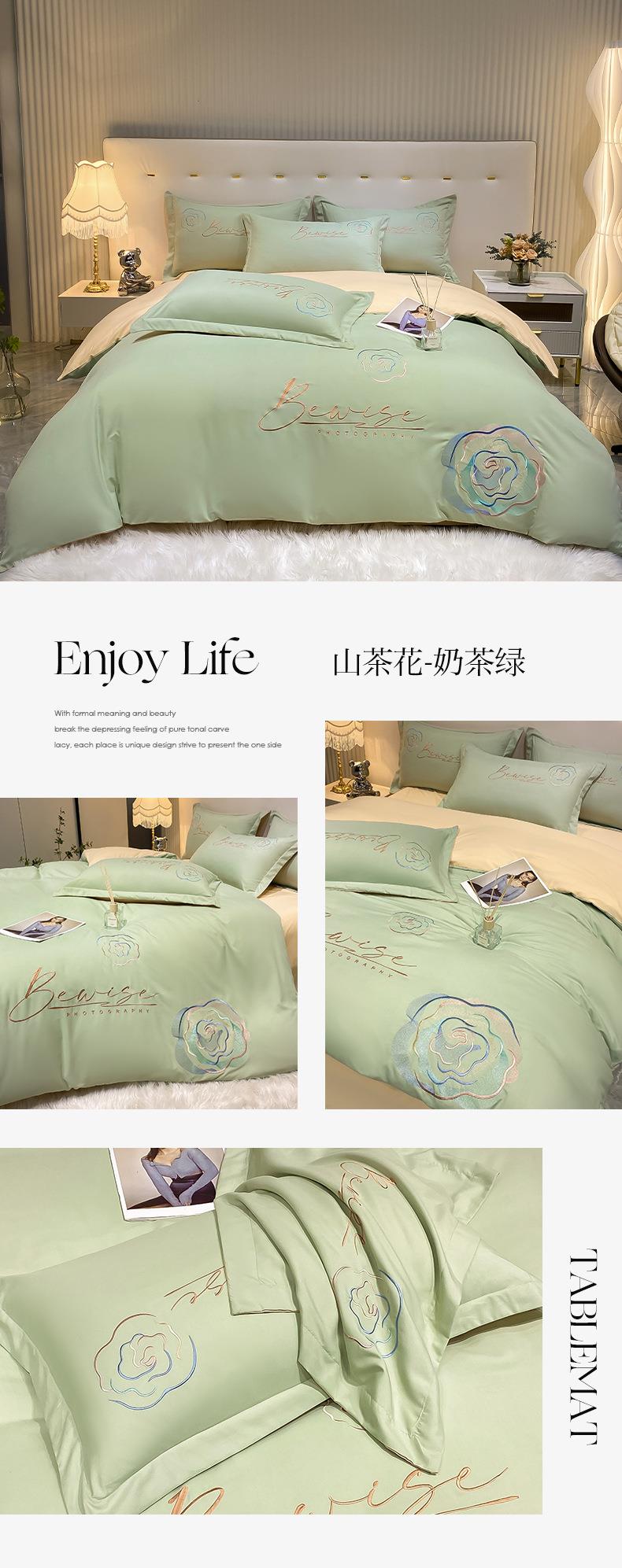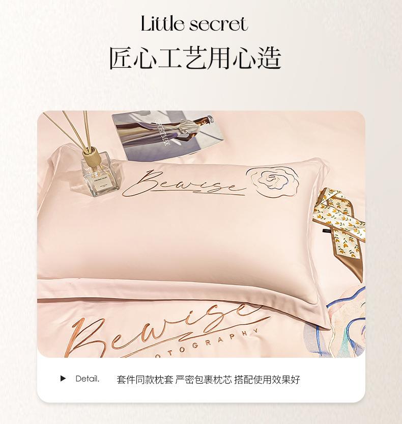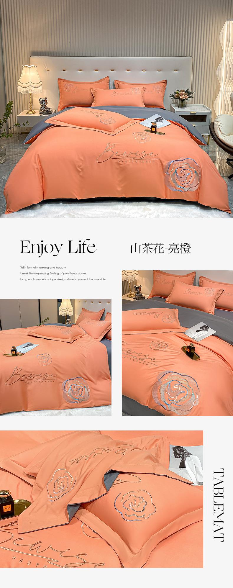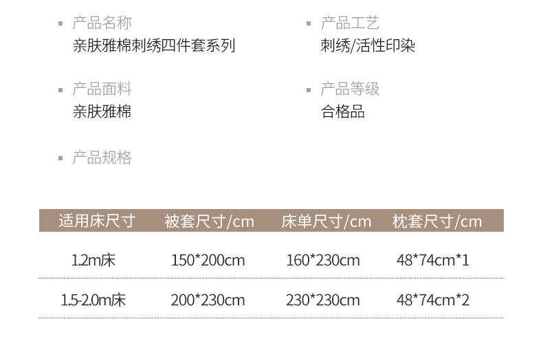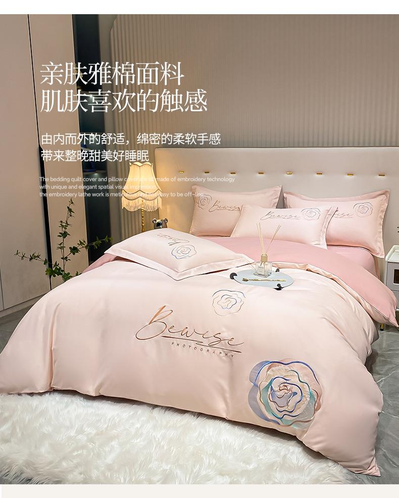 【亲肤棉刺绣磨毛轻奢四件套】刺绣磨毛床单款四件套纯色床上用品