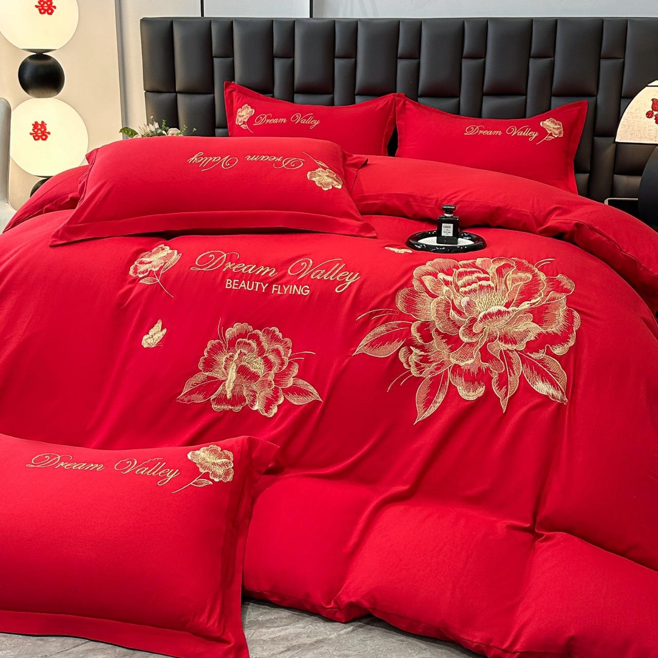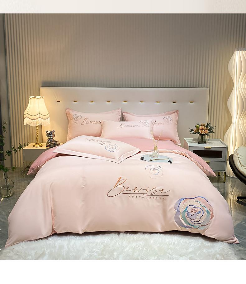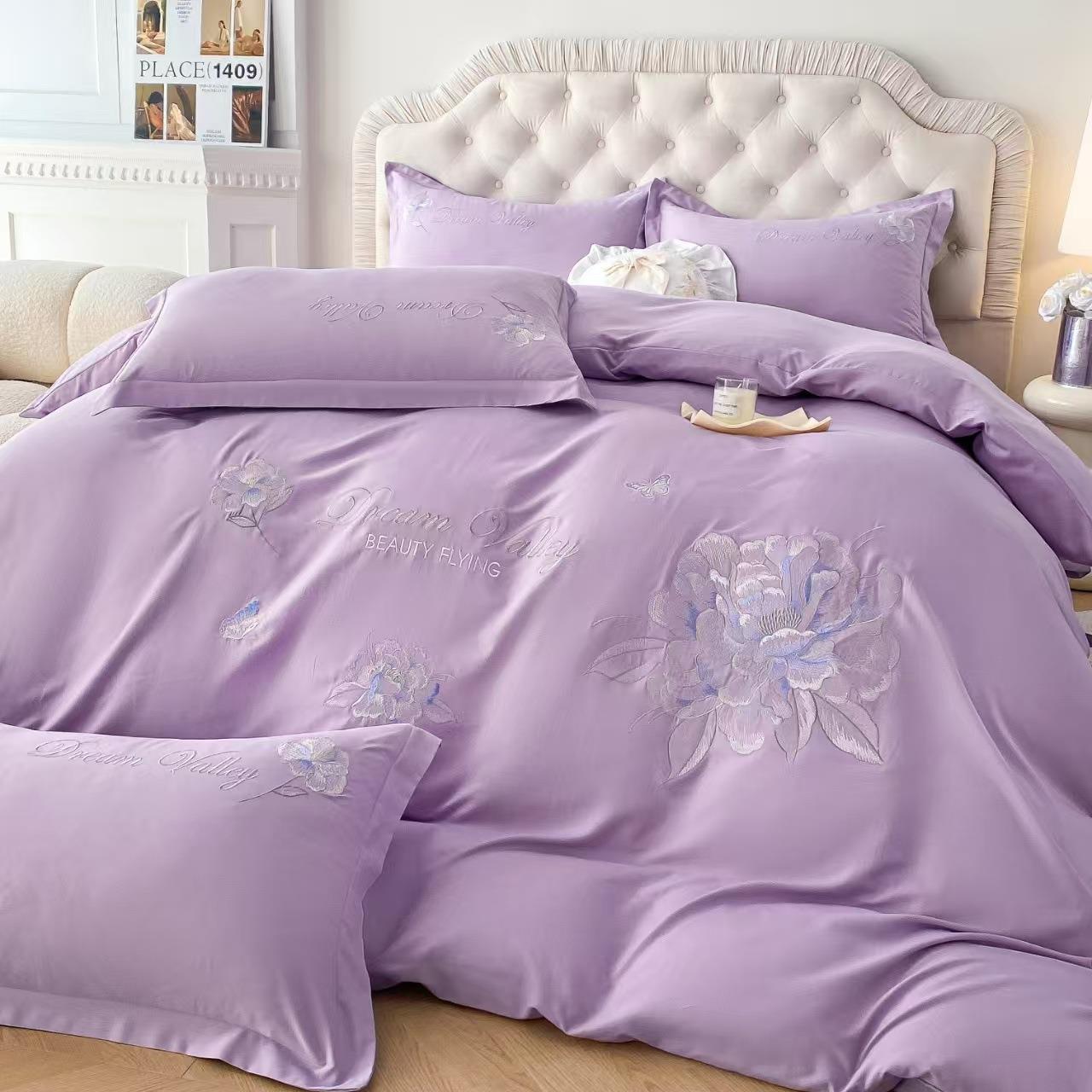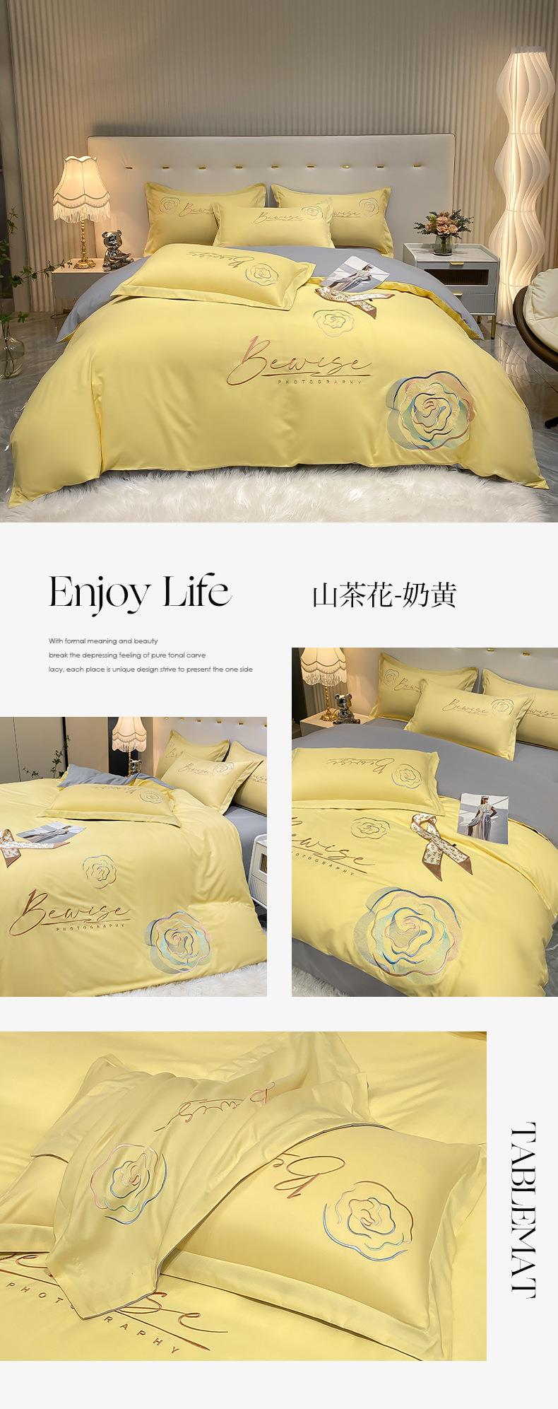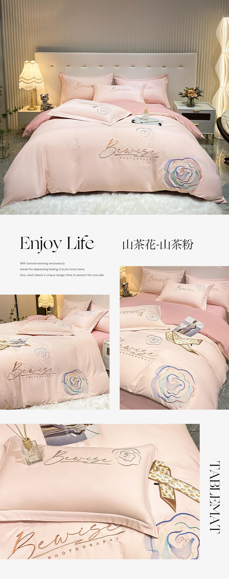 【亲肤棉刺绣磨毛轻奢四件套】刺绣磨毛床单款四件套纯色床上用品