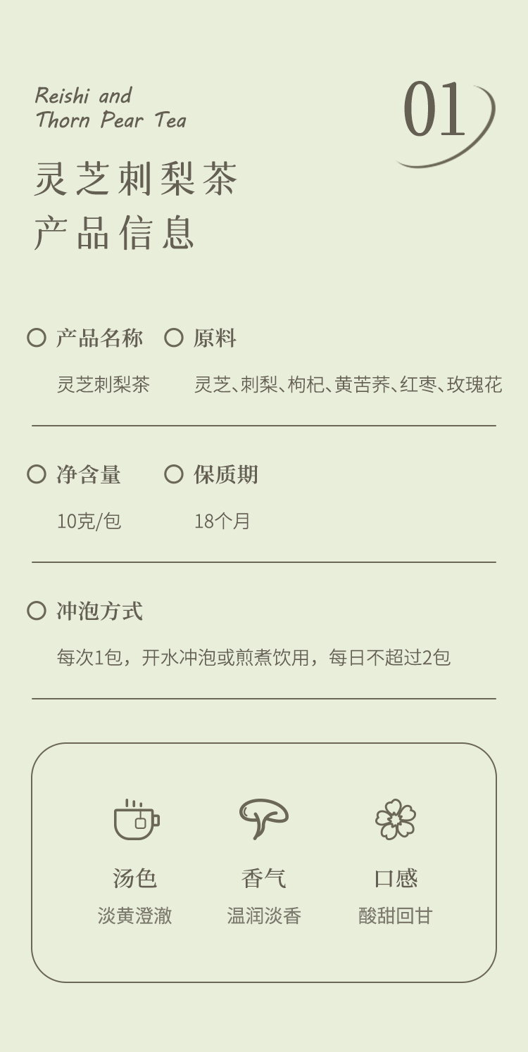 配料表:灵芝(非取粉灵芝添加量不少于20%)、刺梨干、枸杞、黄苦荞、红枣片、玫瑰花瓣