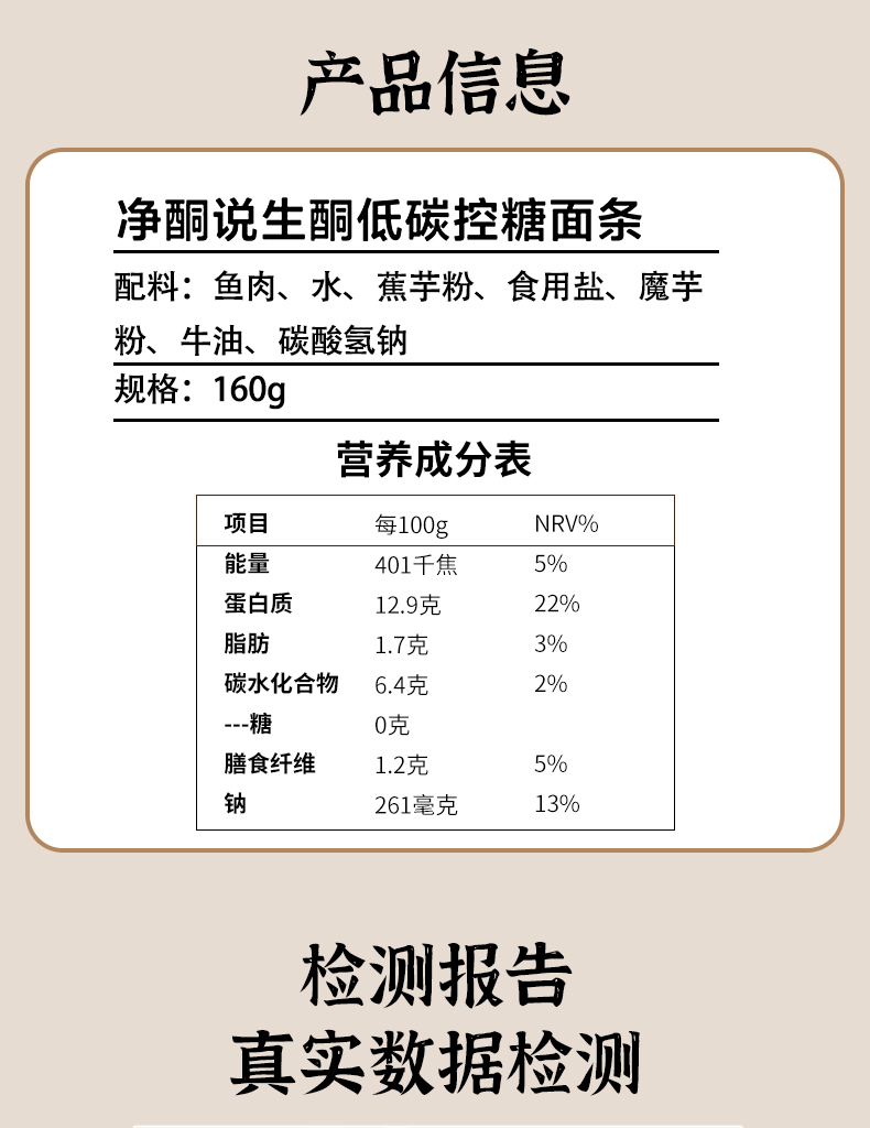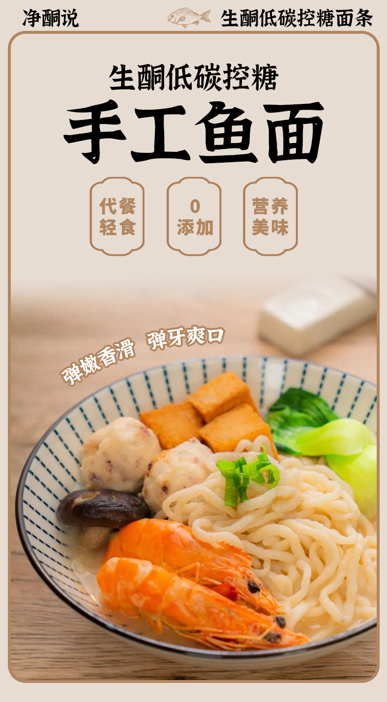 【净酮说】控糖鱼肉面条 160g/袋
