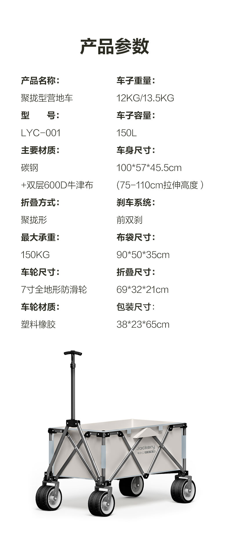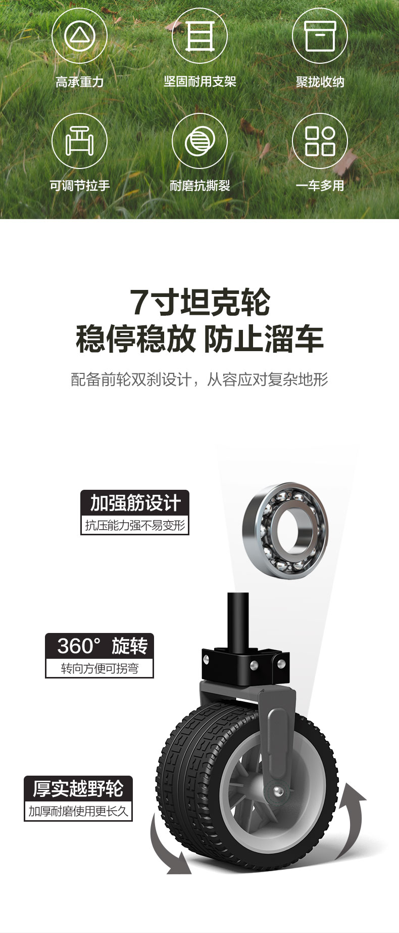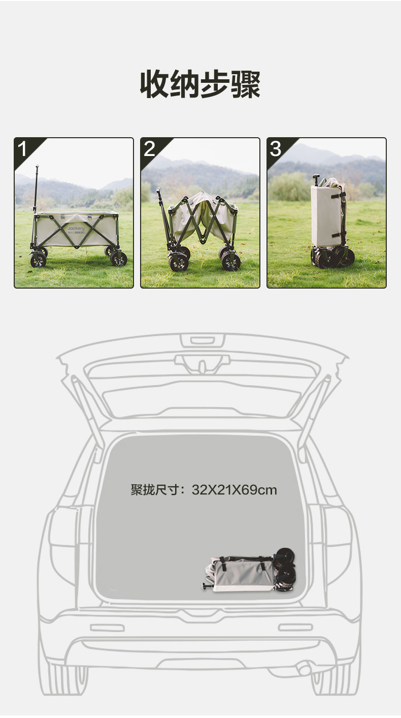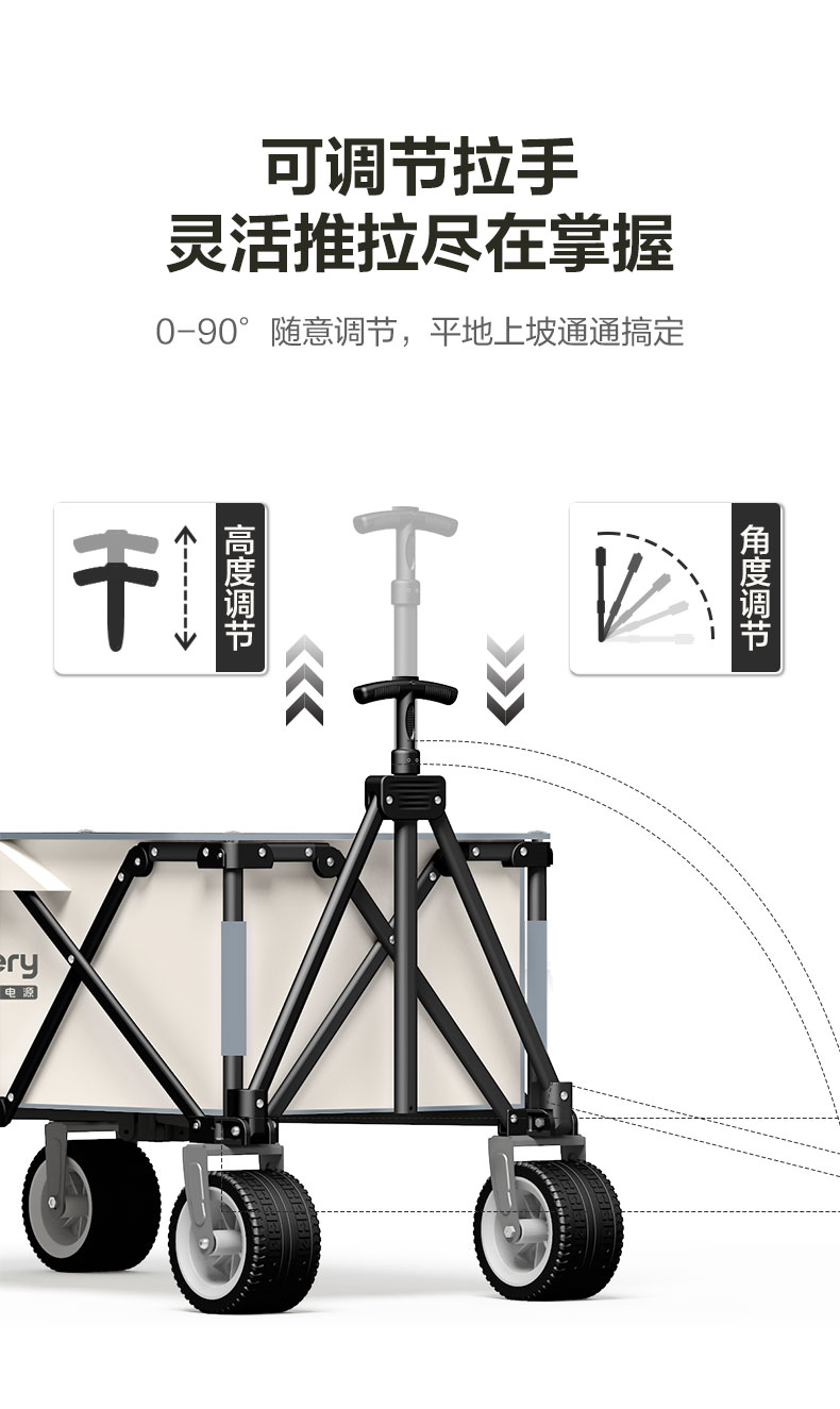 电小二户外露营坦克轮推车可折叠超大拉杆野营野餐手拉车