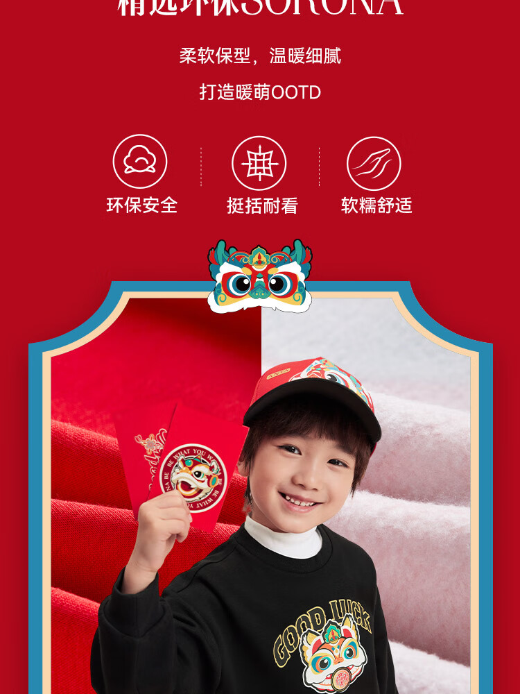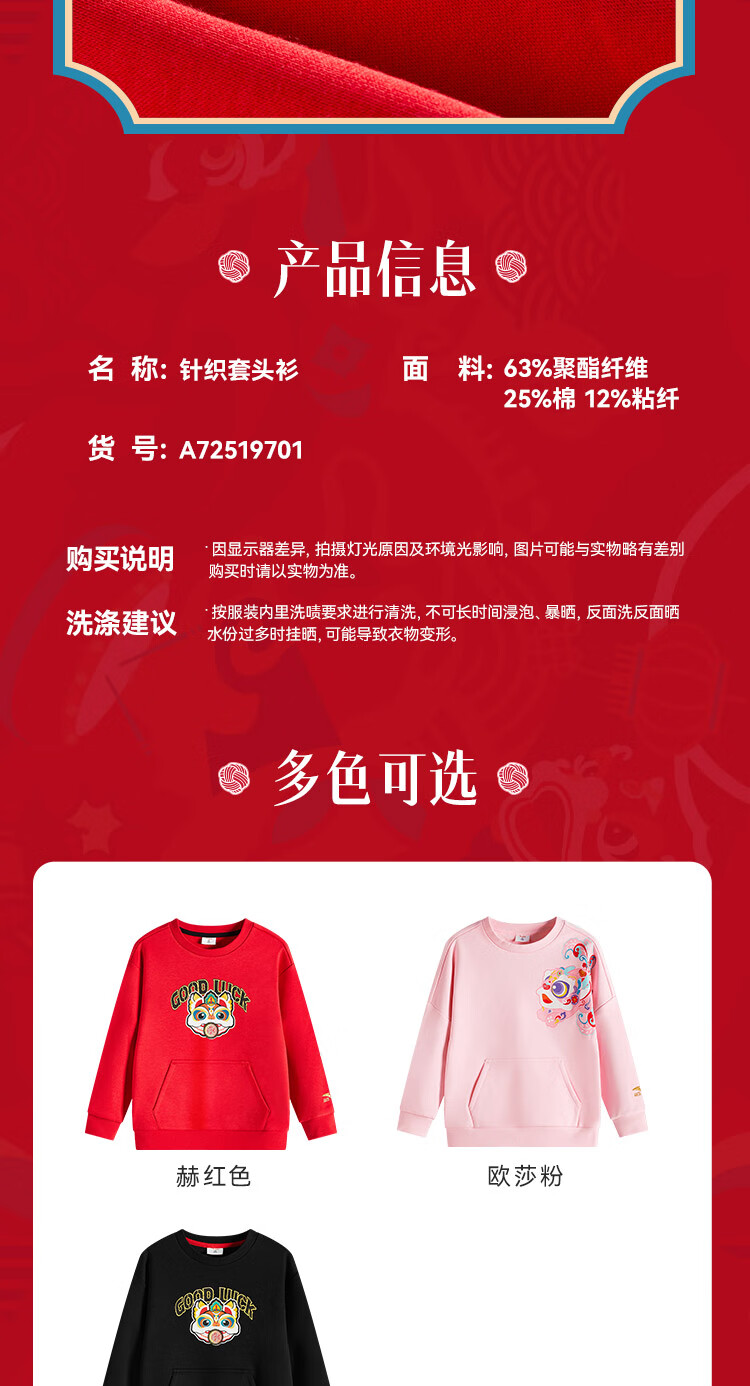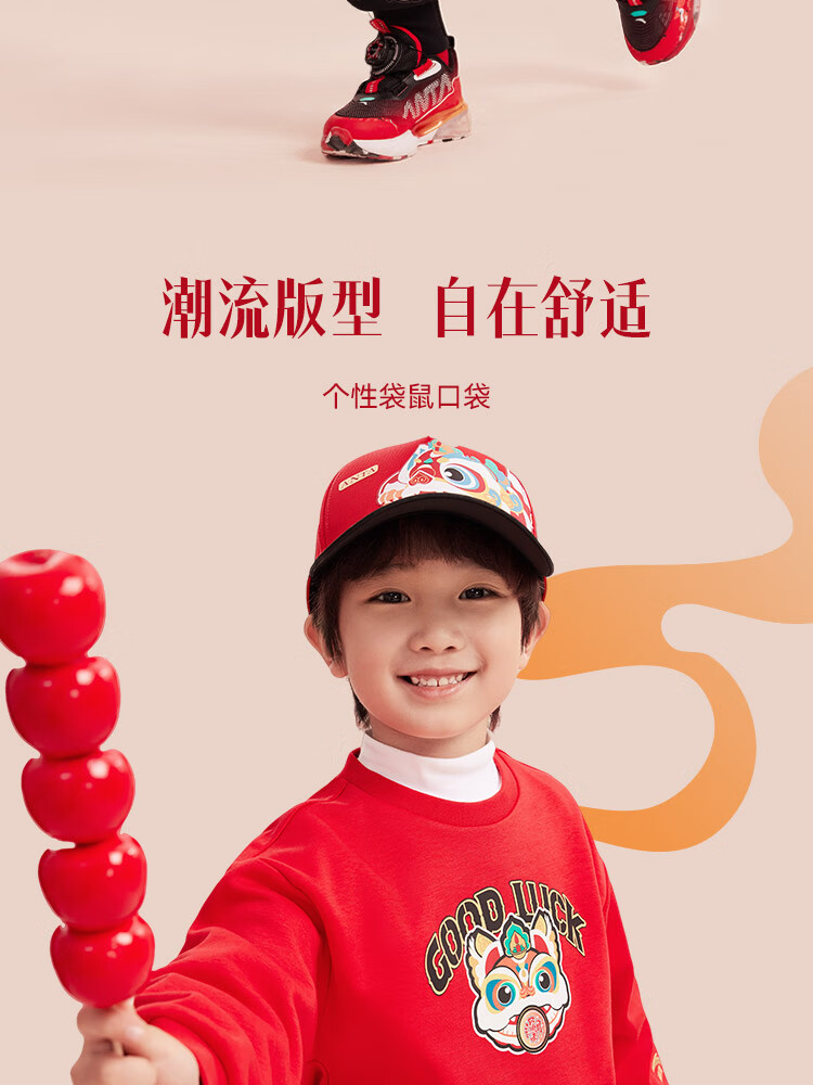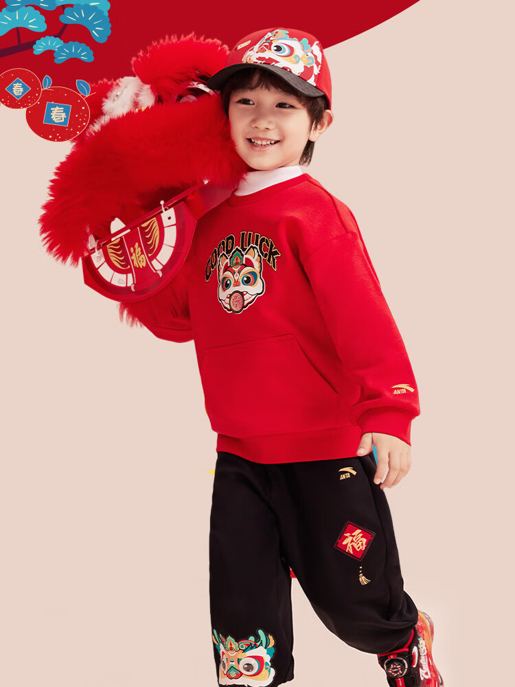 安踏儿童卫衣2025男童套头衫女童加绒保暖卫衣百搭上衣A72519701