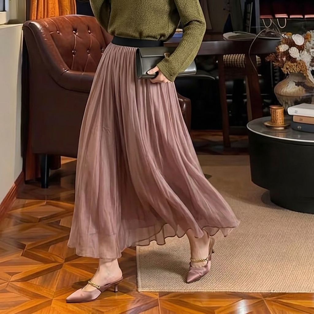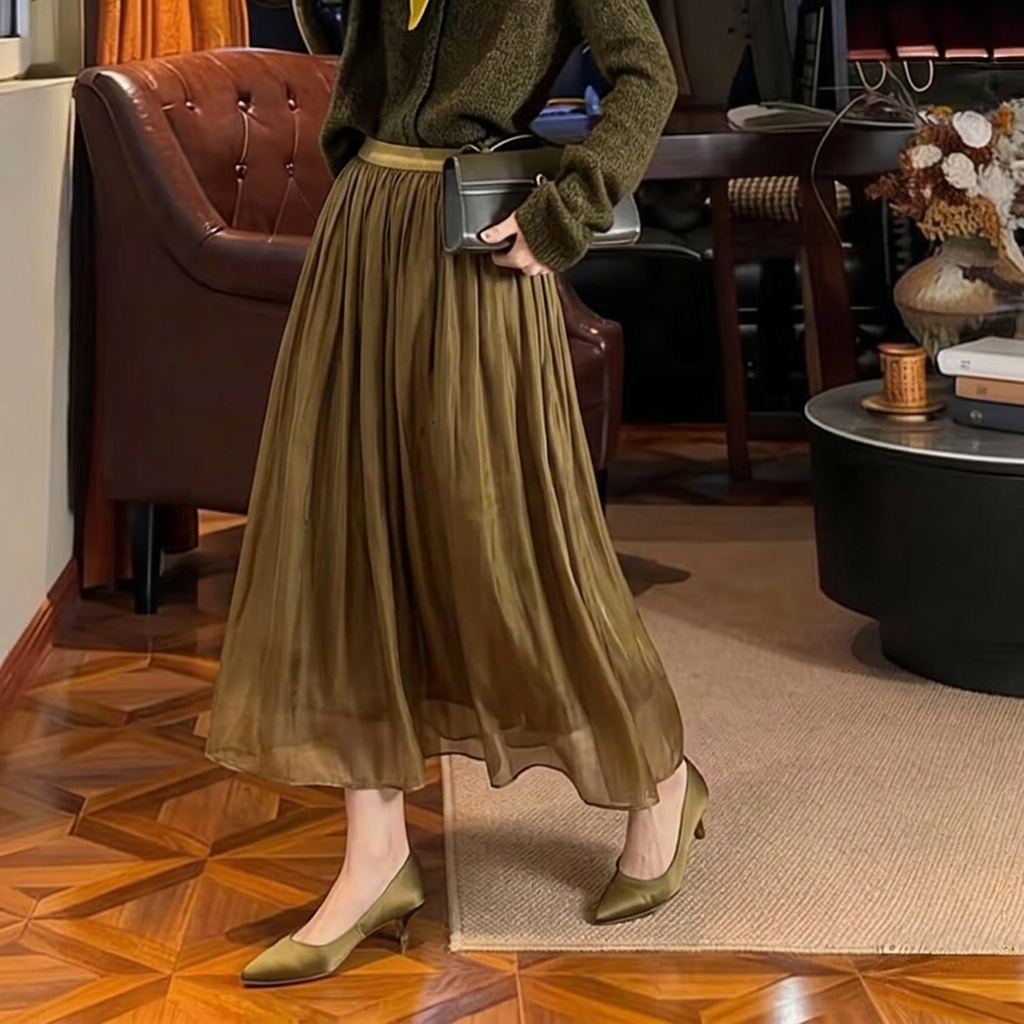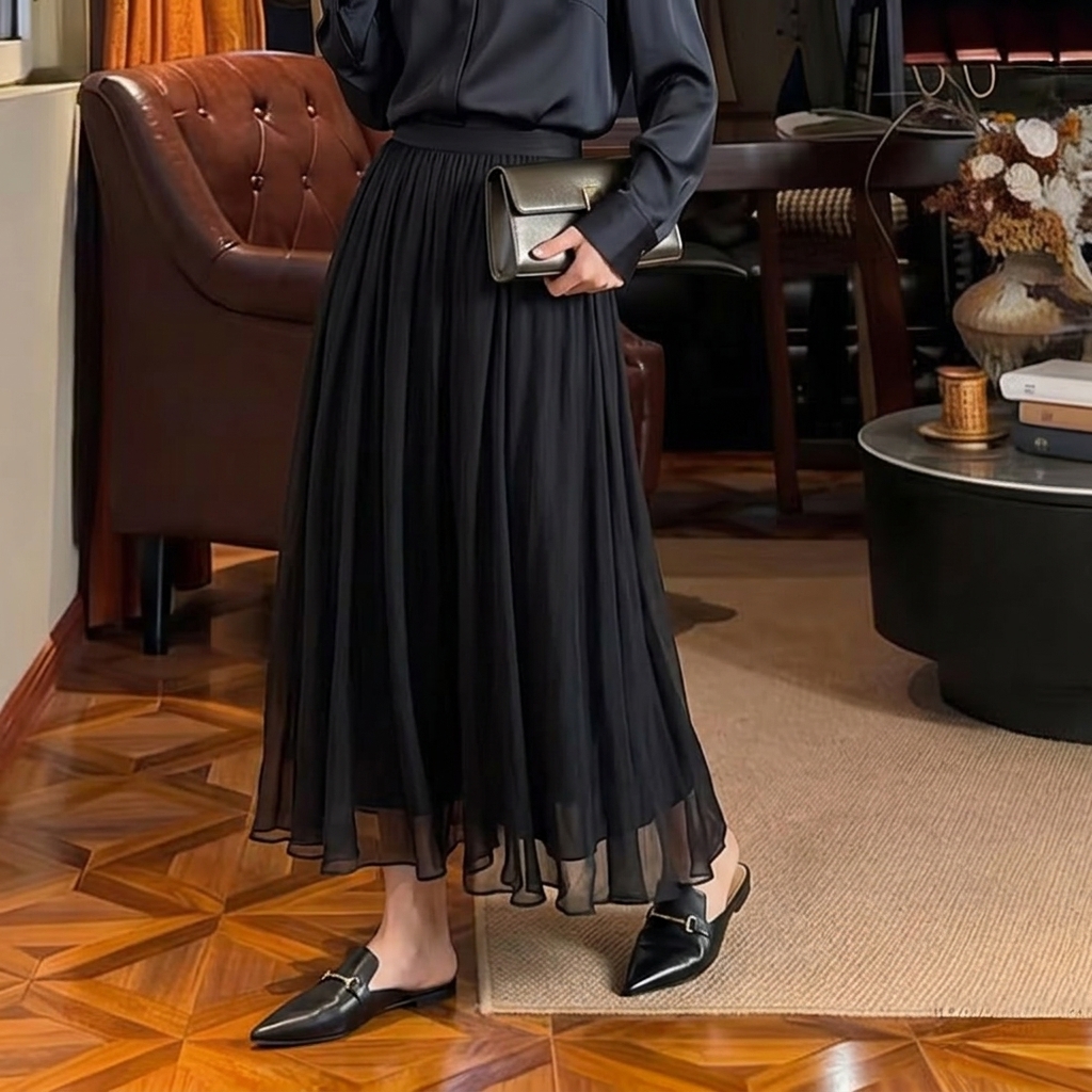 夏日序曲~柔光丝滑100%桑蚕丝松紧腰半身裙女高腰真丝长裙